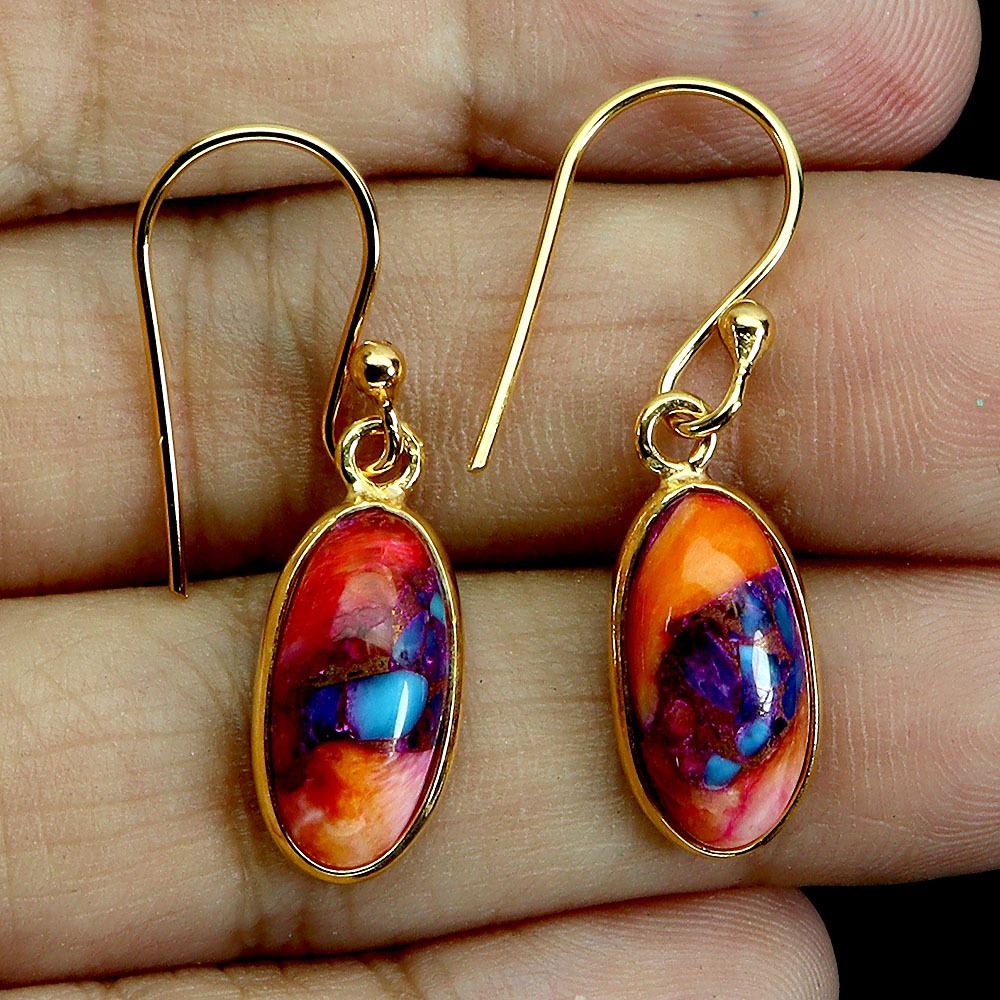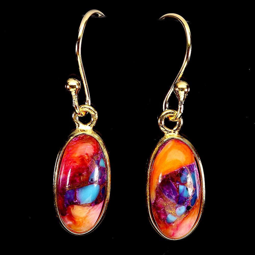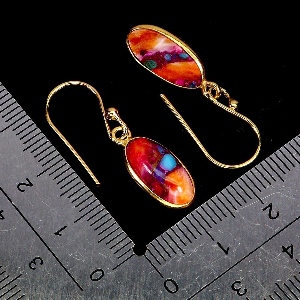 OVAL CUT BIG 14X7 mm KINGMAN TURQUOISE EARRINGS IN 14K WHITE PLATED GOLD OVER 925 STERLING SILVER - APPRAISED REPLACEMENT VALUE CAD 800