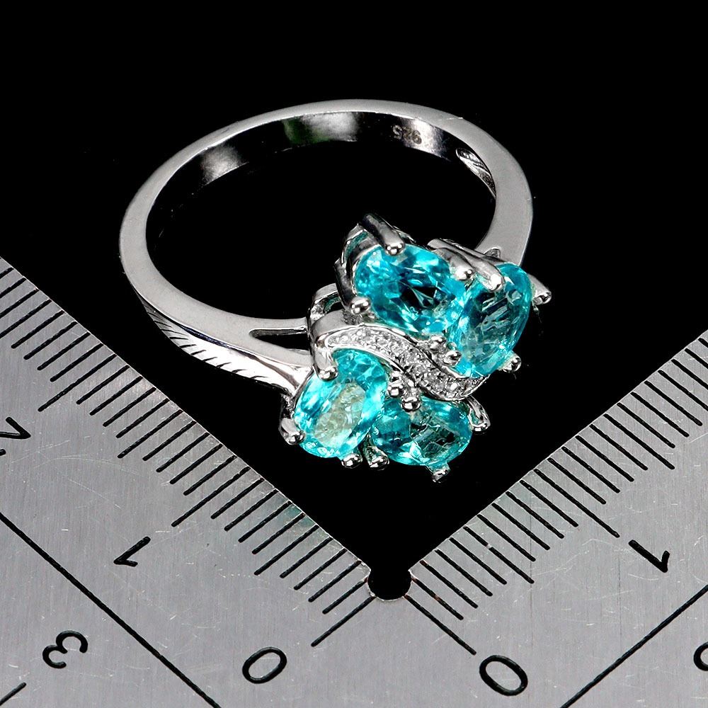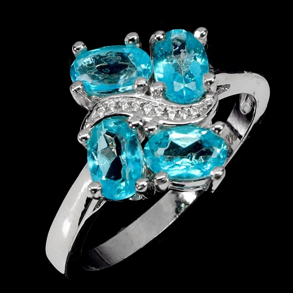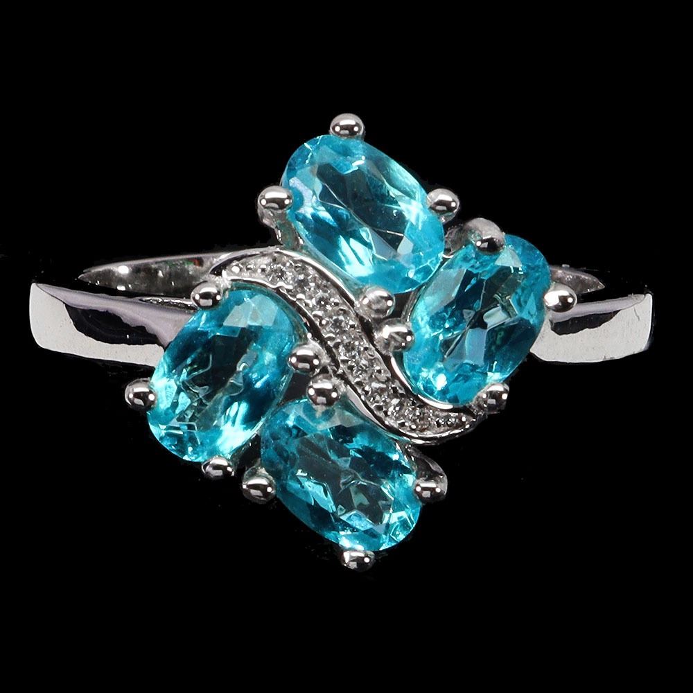OVAL CUT PARAIBA BLUE TOPAZ RING IN 14K WHITE PLATED GOLD OVER 925 STERLING SILVER - APPRAISED REPLACEMENT VALUE CAD 420