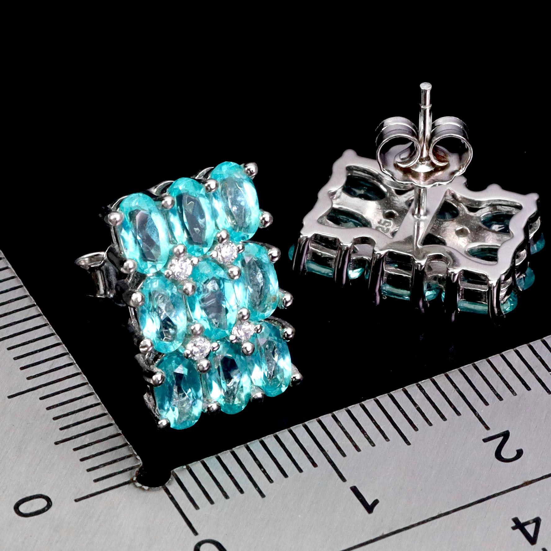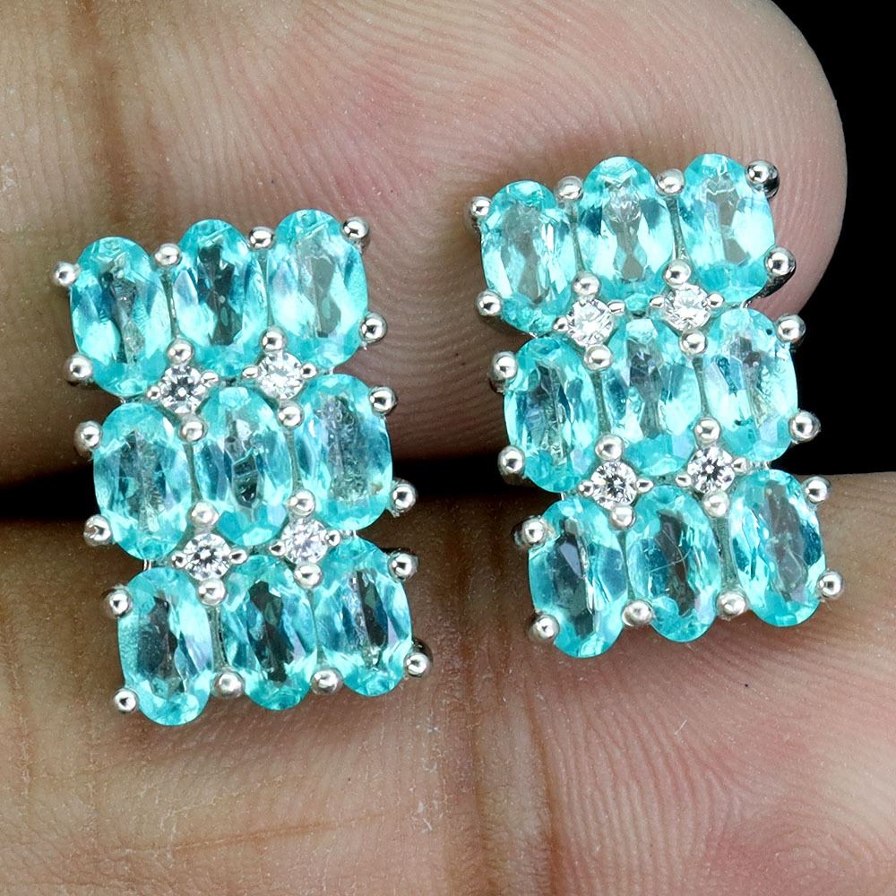 OVAL PARAIBA BLUE TOPAZ EARRINGS IN 14K WHITE PLATED GOLD OVER 925 STERLING SILVER - APPRAISED REPLACEMENT VALUE CAD 850