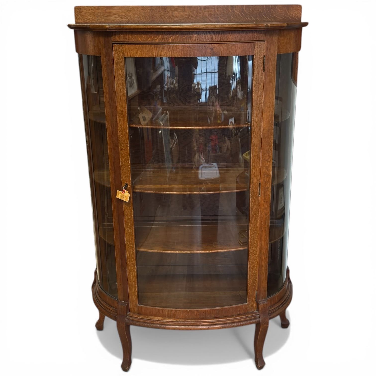 Oak Curved Glass Display Cabinet with Keys (16" x 36" x 59" tall)