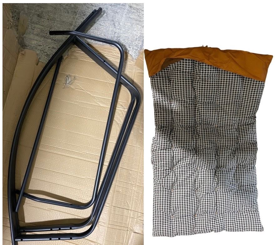 Open Box Hammock Chair (?) with Black Metal Frame & Pattern Cushion (No Manual or Hardware Kit)