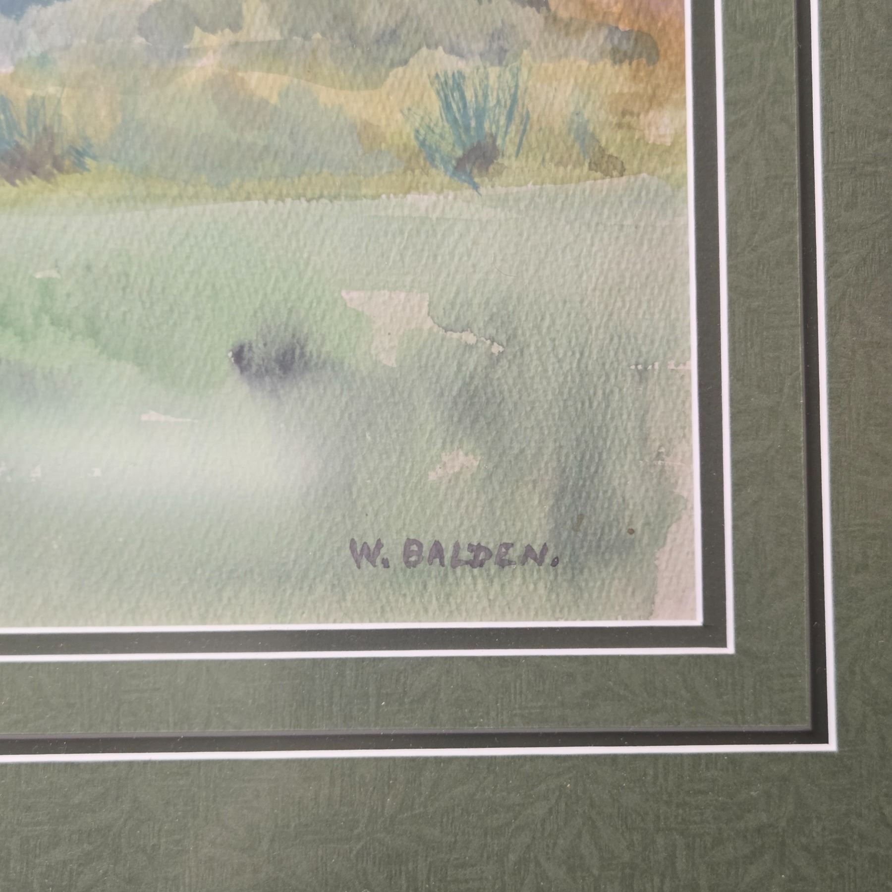 Original watercolor depicting a farm scene, signed by artist W. Balden. The painting measures 29.5x23 inches, including the frame. Medium: watercolor on paper. Features a rural landscape with detailed brushwork. Presented in a coordinating frame, ready for display.