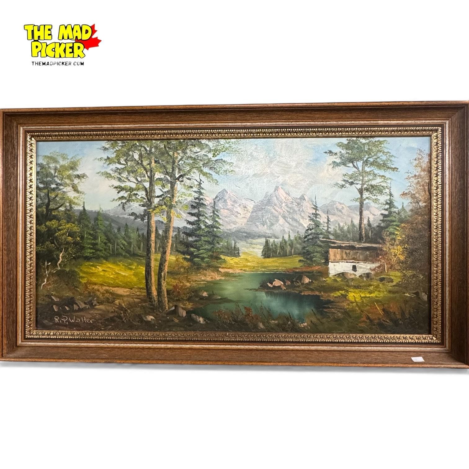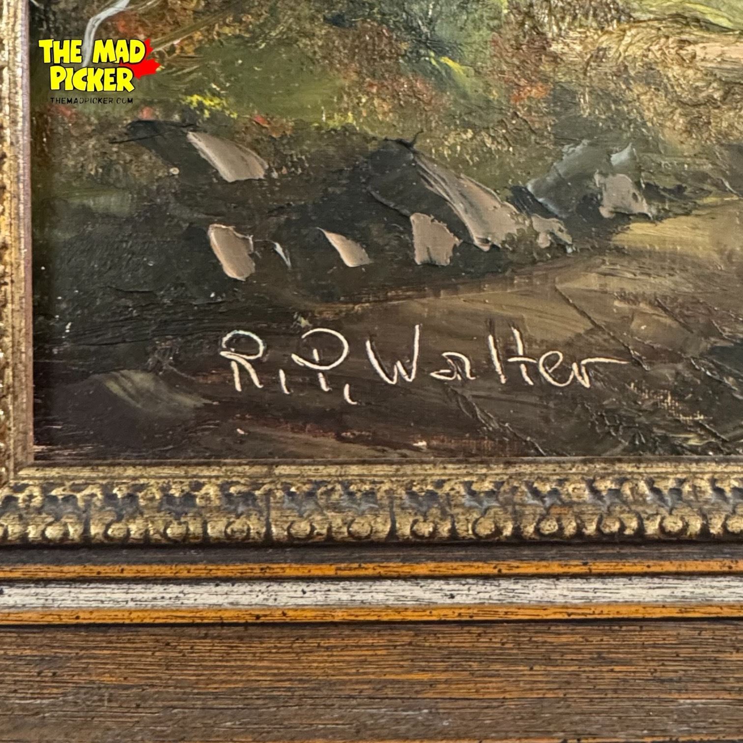 Original Scenic Painting on Canvas Artist Signed by R.P. Walter in Frame 34.5x19"