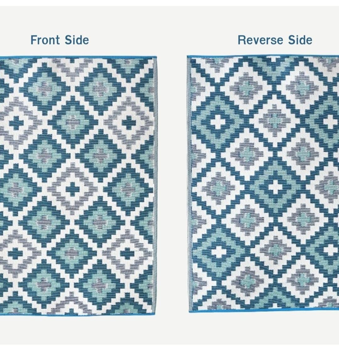 Outdoor Patio Rug Mat 6x9 Reversible & Waterproof - Random Colour and Pattern