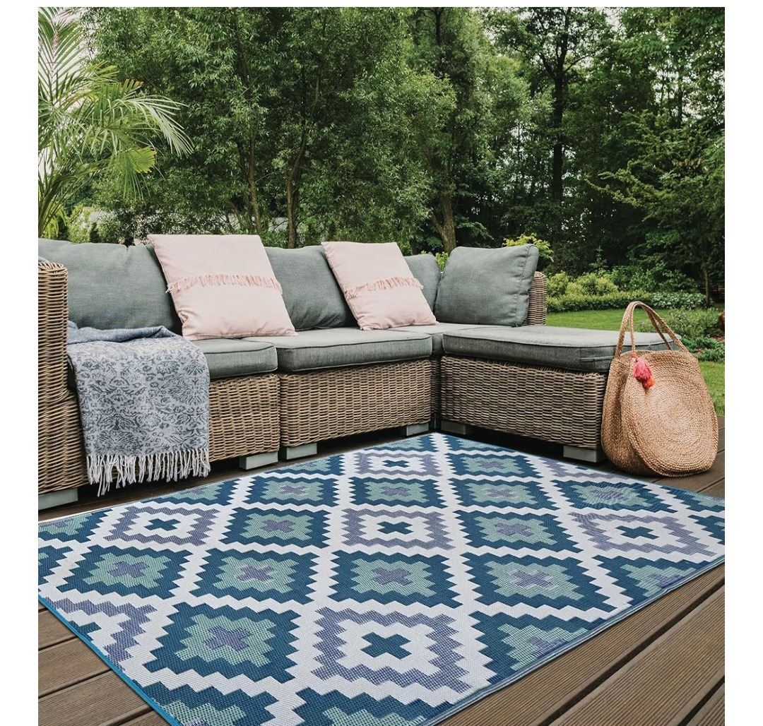 Outdoor Patio Rug Mat 6x9 Reversible & Waterproof - Random Colour and Pattern
