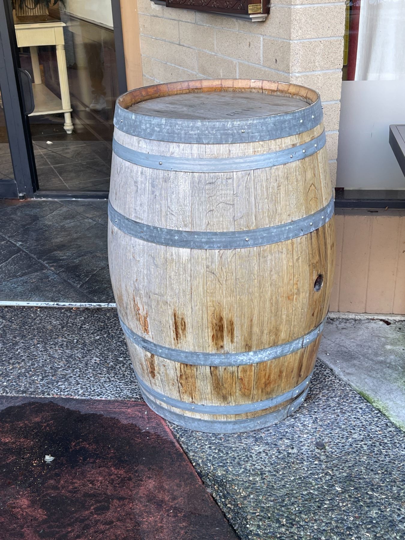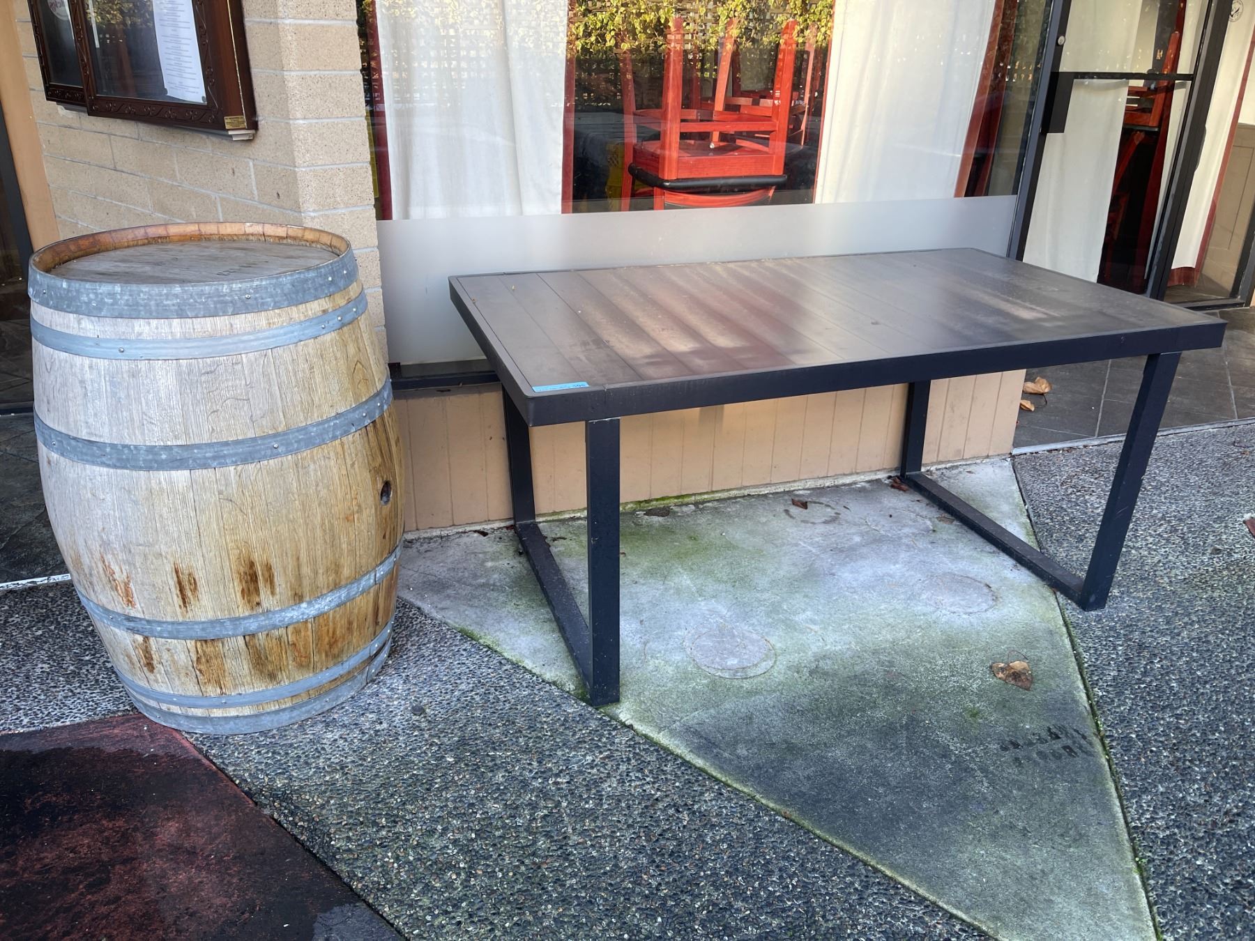 Outdoor dining table & "Burrowing Owl" wine cask barrel