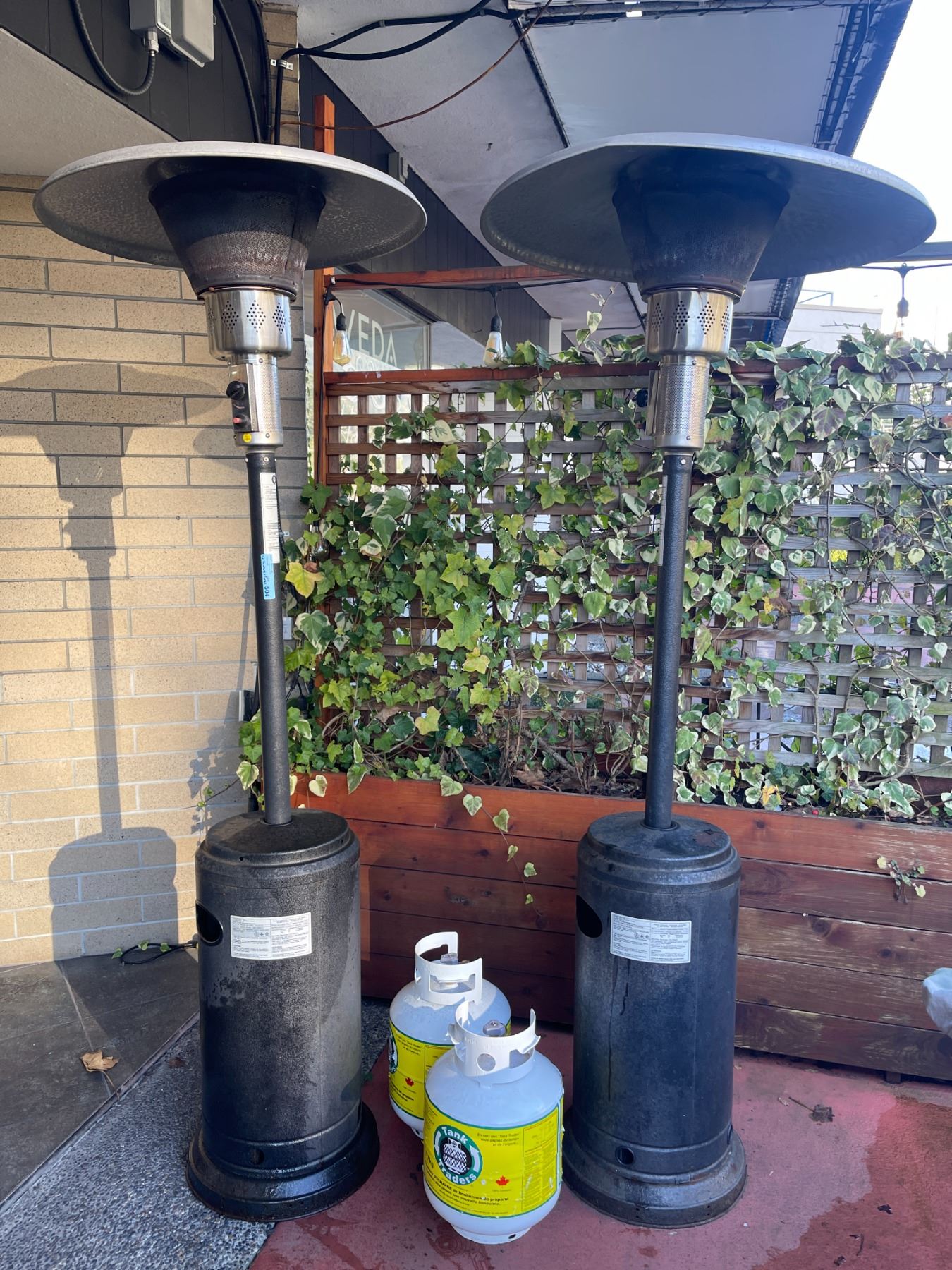 Outdoor gas heaters (x2) w/ propane tanks & extra tanks - Tested & working