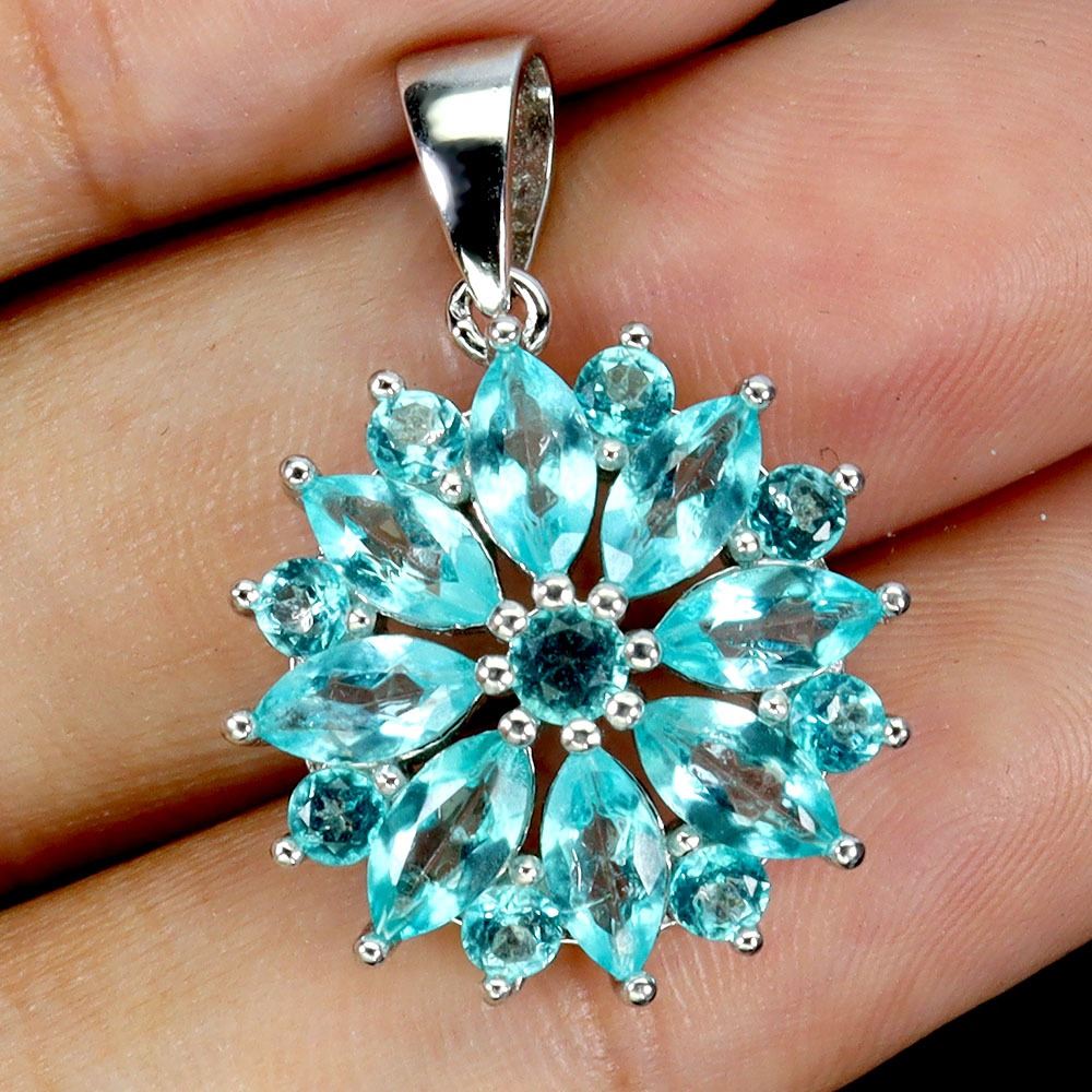 PARAIBA BLUE TOPAZ PENDANT IN 14K WHITE PLATED GOLD OVER 925 STERLING SILVER - APPRAISED REPLACEMENT VALUE CAD 540