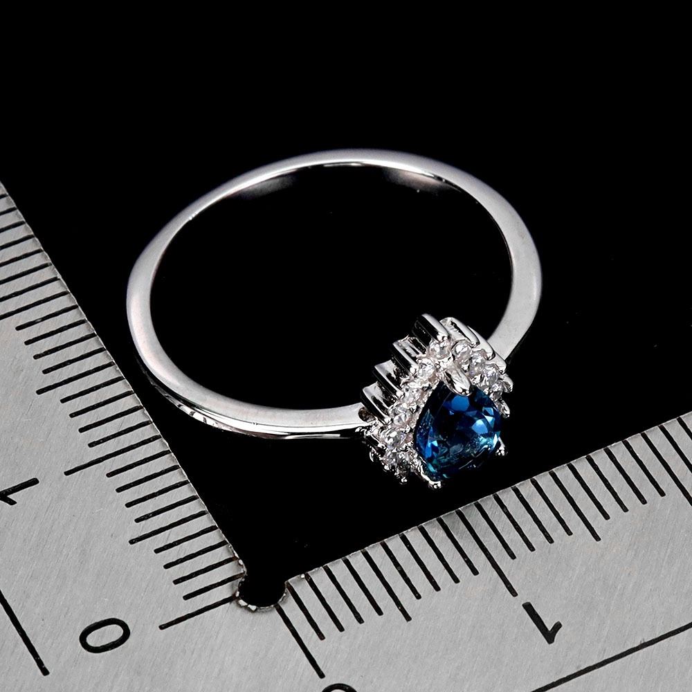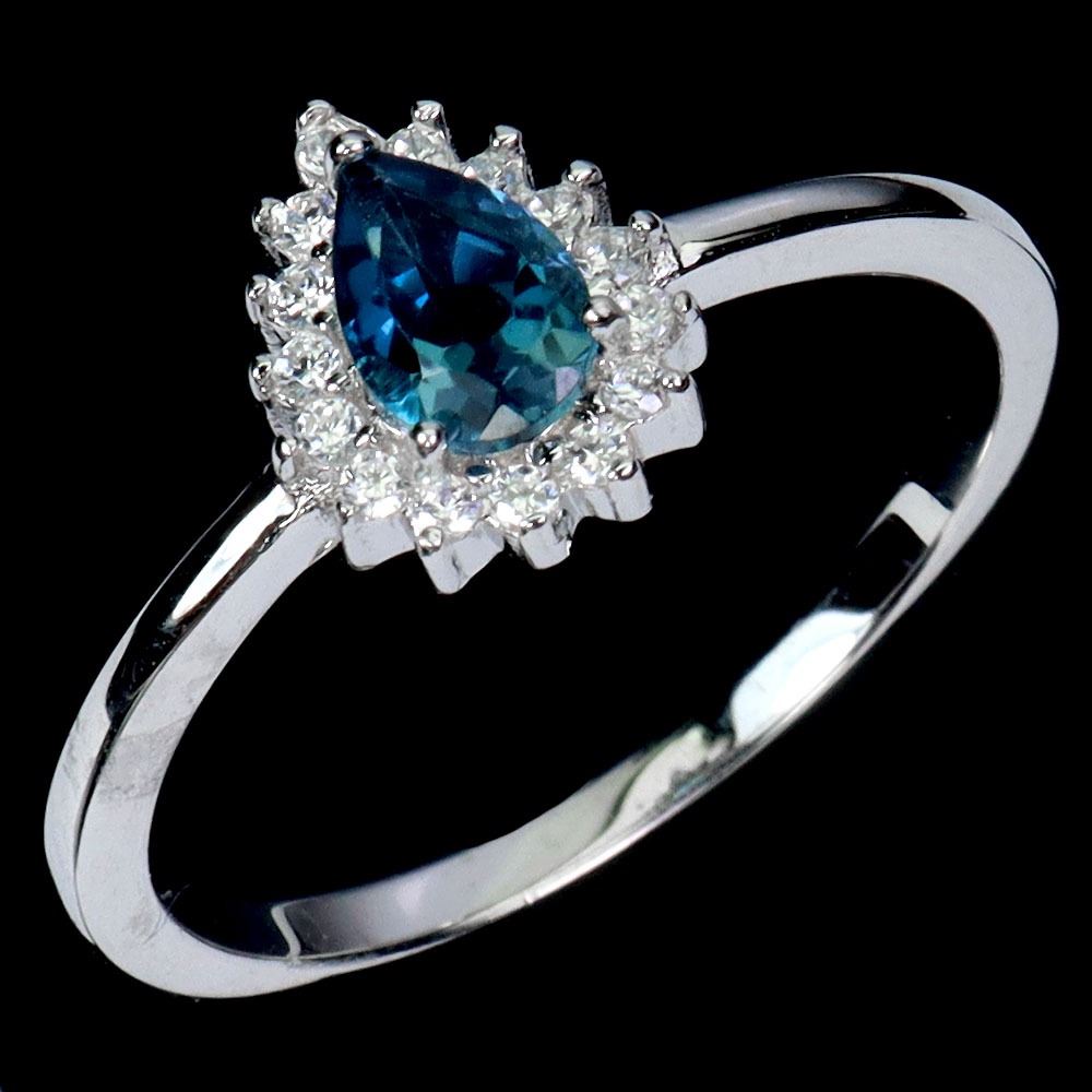 PEAR CUT 6x4 mm LONDON BLUE RING IN 14K WHITE PLATED GOLD OVER 925 STERLING SILVER - SIZE 7 - APPRAISED REPLACEMENT VALUE CAD 385