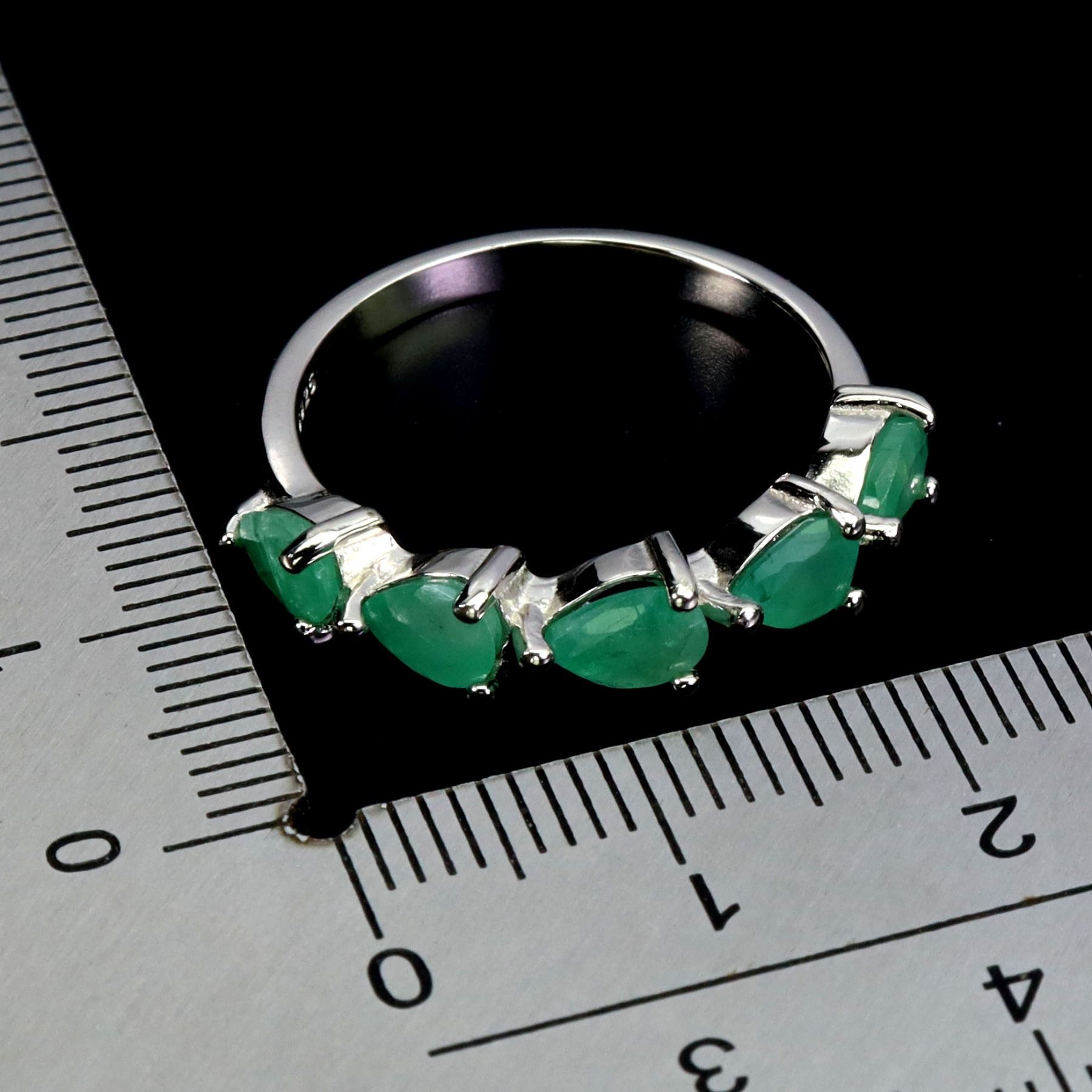 PEAR CUT EMERALD CUT RING IN 14K WHITE PLATED GOLD OVER 925 STERLING SILVER - SIZE 8 - APPRAISED REPLACEMENT VALUE CAD 820