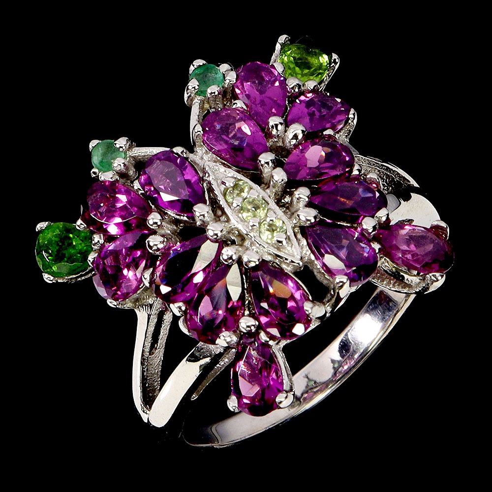 PEAR CUT RHODOLITE GARNET RING IN 14K WHITE PLATED GOLD OVER 925 STERLING SILVER - SIZE 8.5 - APPRAISED REPLACEMENT VALUE CAD 780