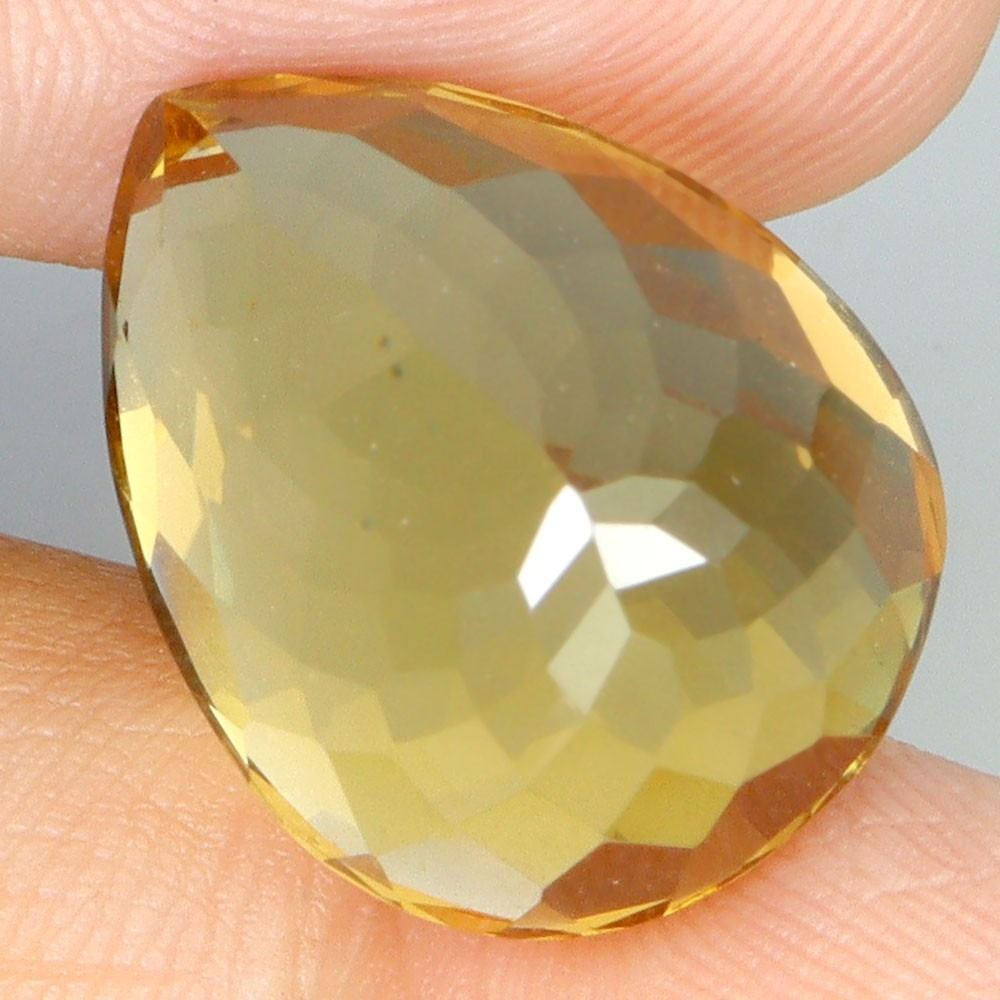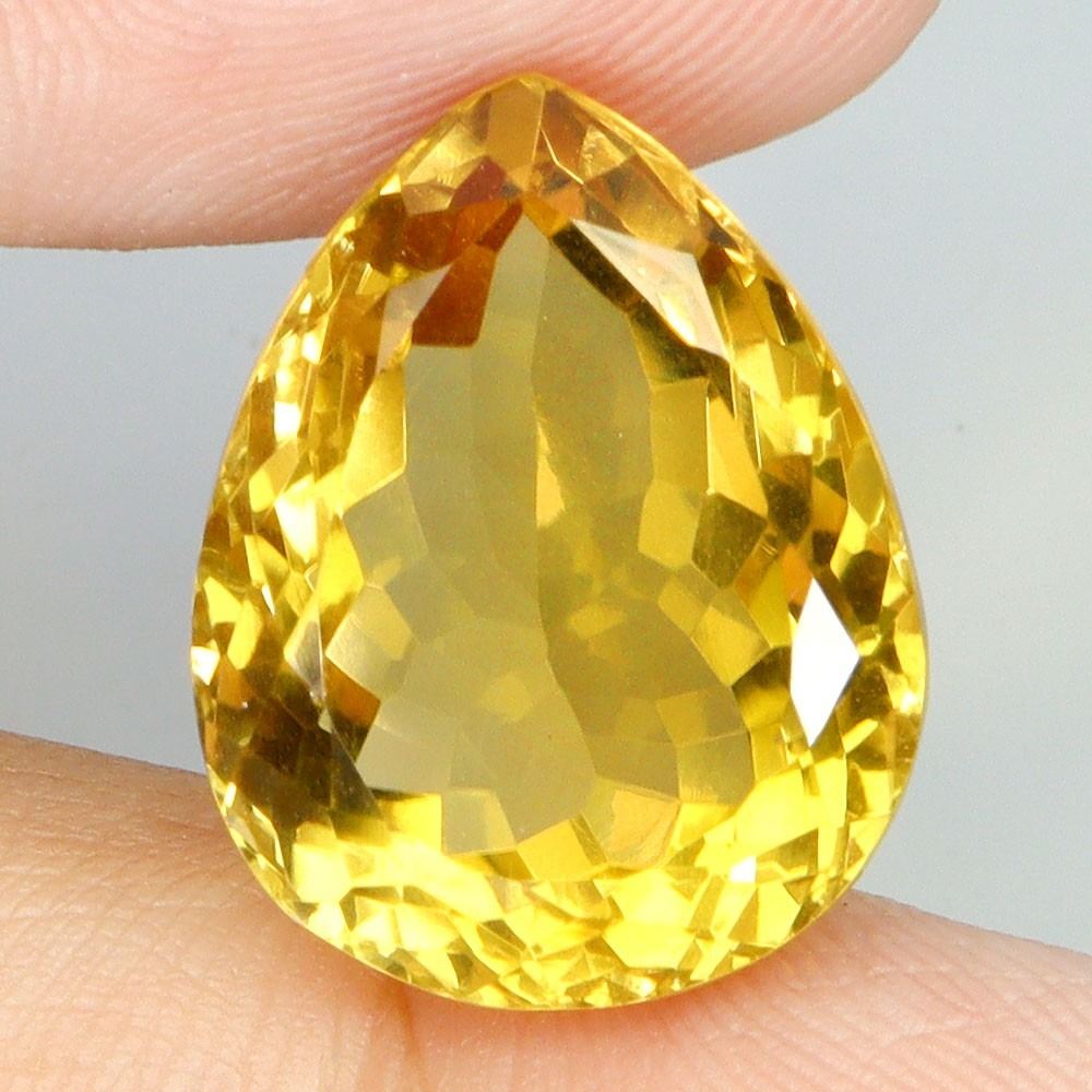 PEAR CUT UNHEATED TOP RICH YELLOW CITRINE BRAZIL 16.60 CARATS 18X14 mm - APPRAISED REPLACEMENT VALUE CAD 720