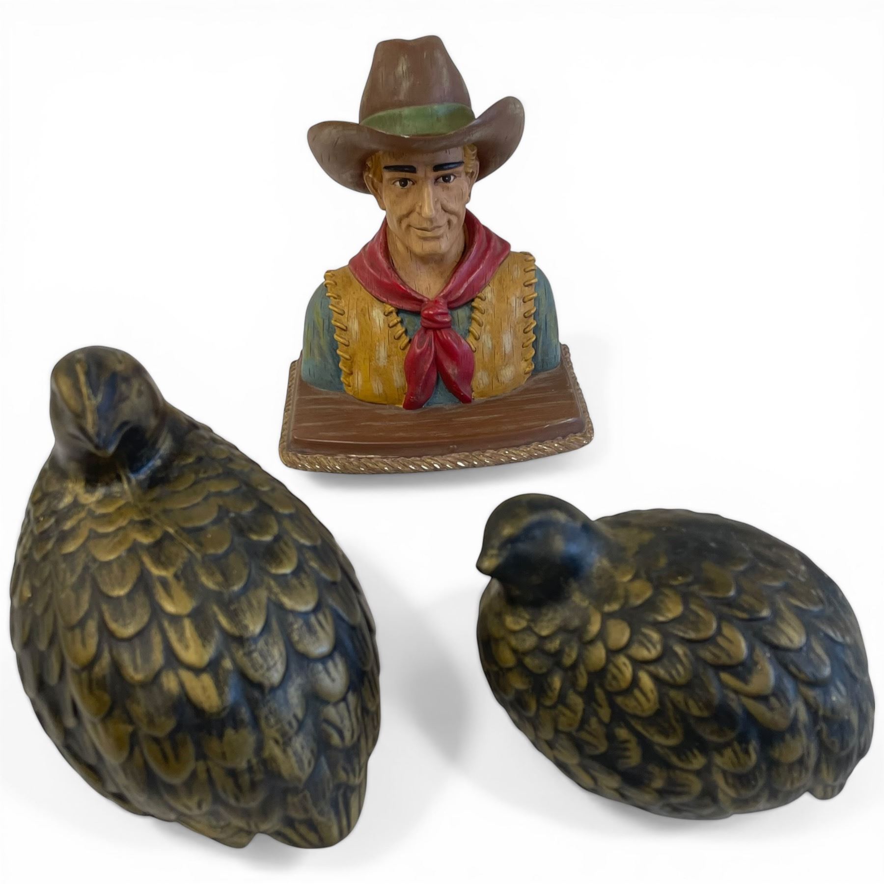Painted Ceramic John Wayne Bust & 2 Ptarmigan Birds (John Wayne is 4" x 6" x 7" tall)