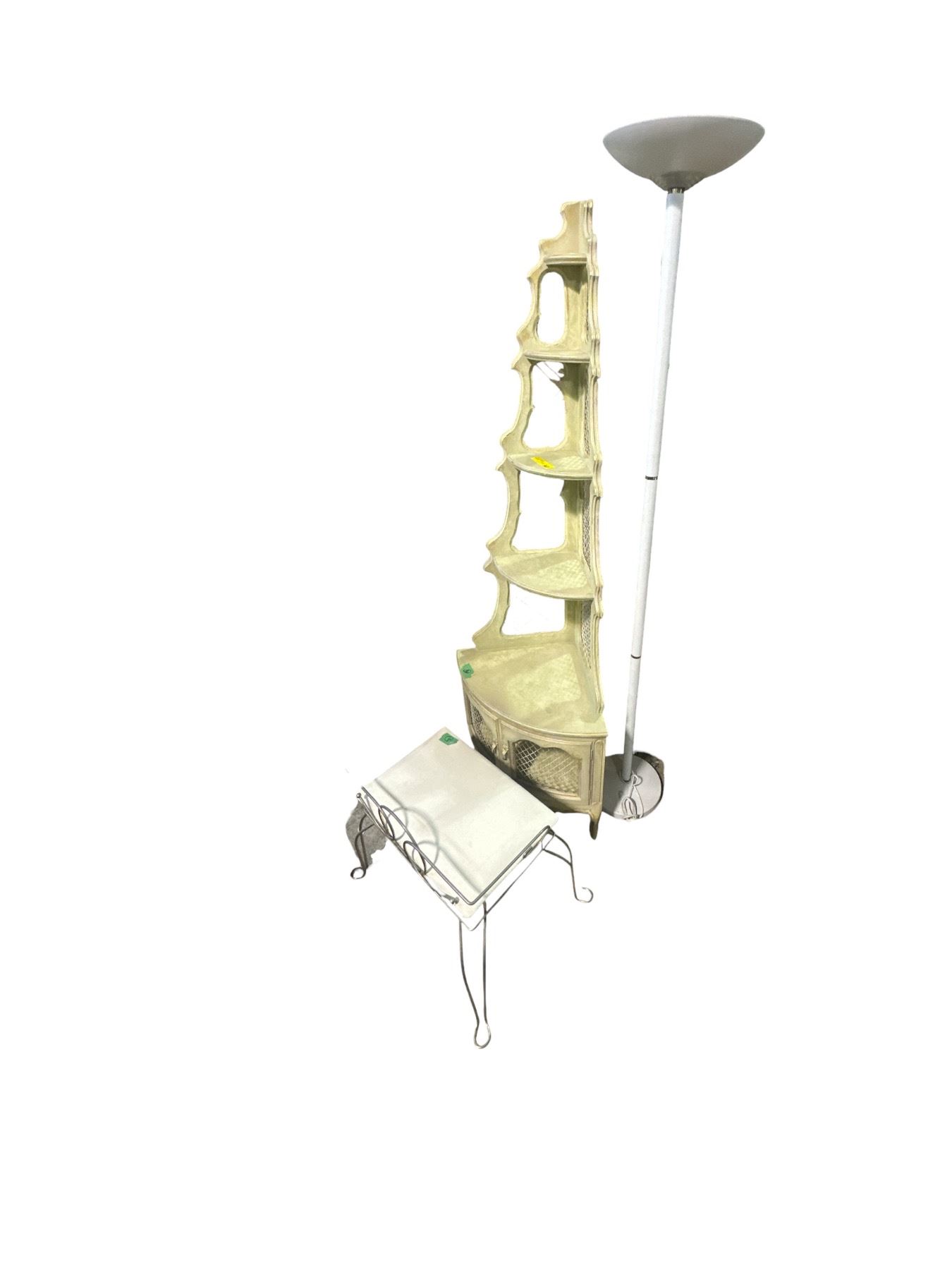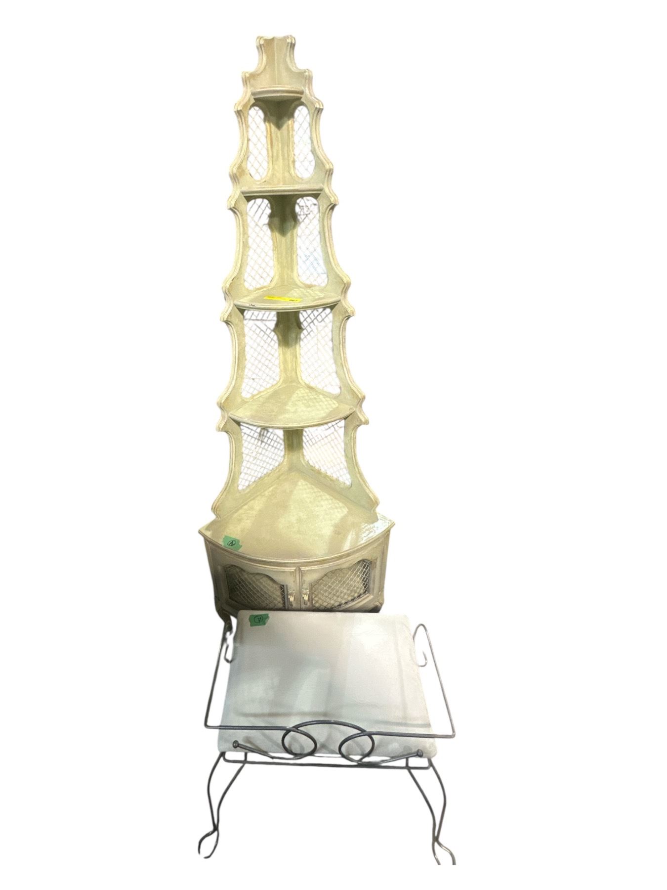 Painted Corner Display Shelf w/ Cushioned Stool