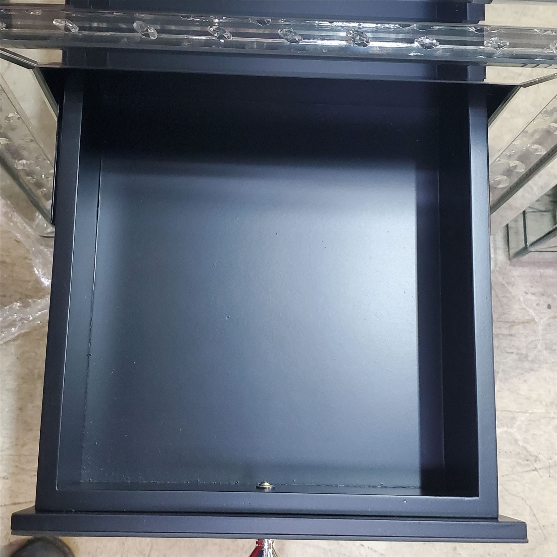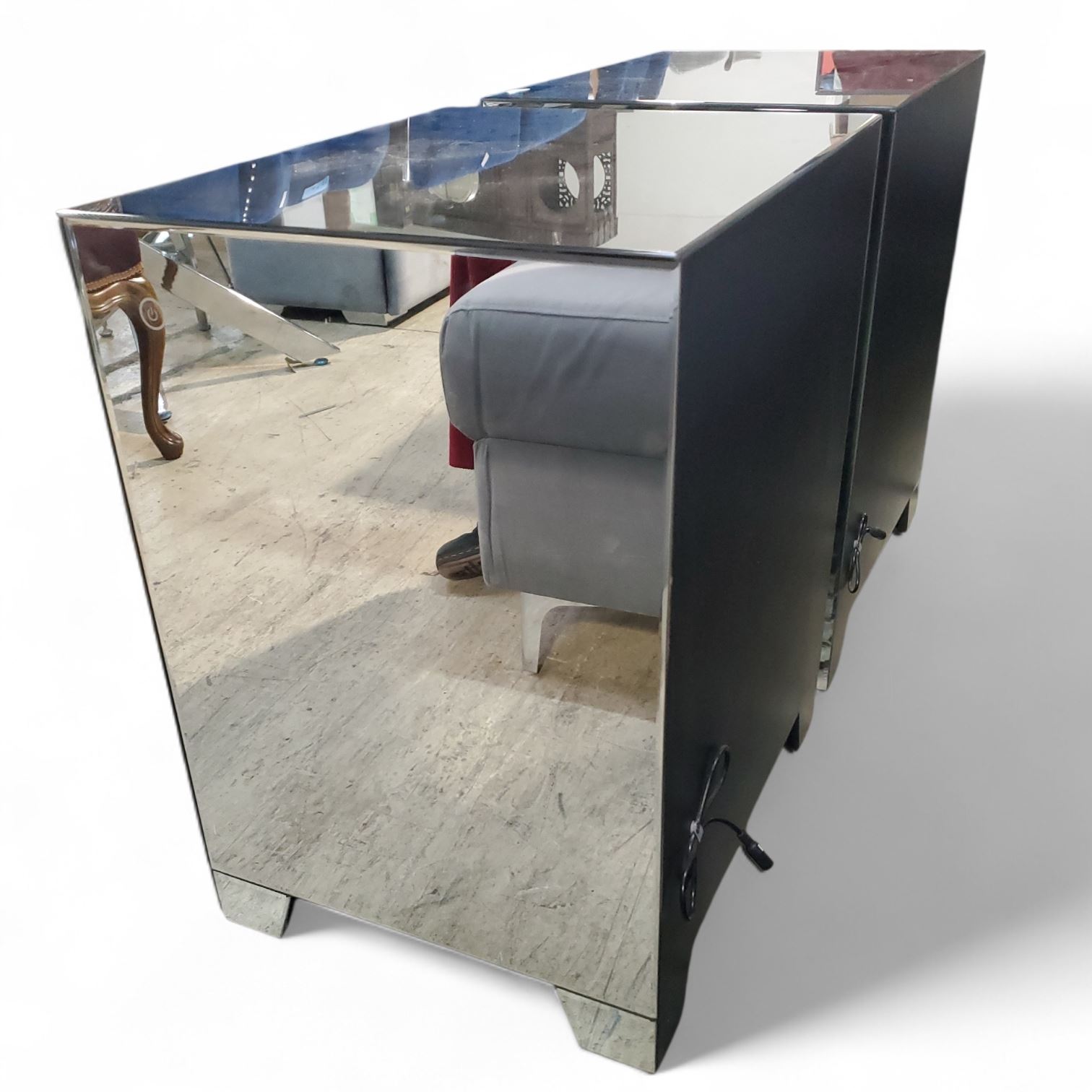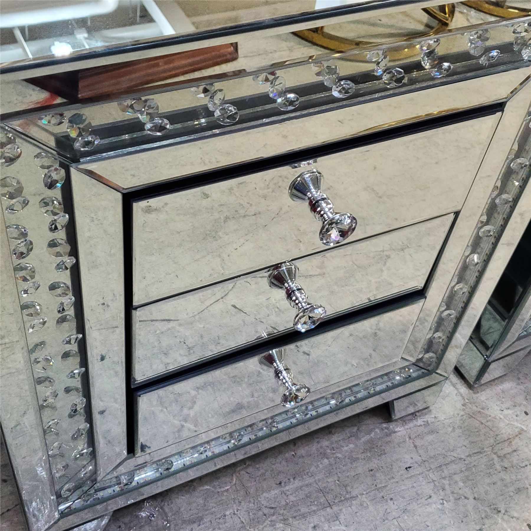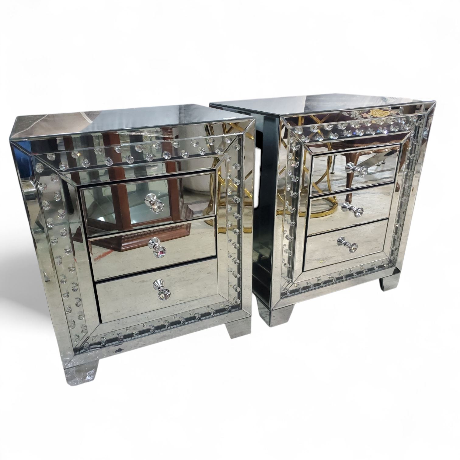 Pair Diamond Glitz Silver Mirrored Bedside Cabinets, H23.5" x W19.5" x D15.5" Each (with Light)