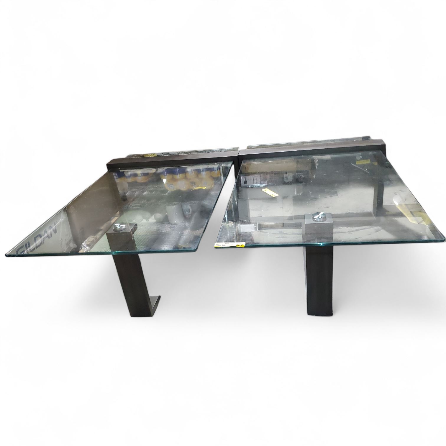 Pair Glass Top Coffee Tables, Approx. H18" x 29" x 48" Each
