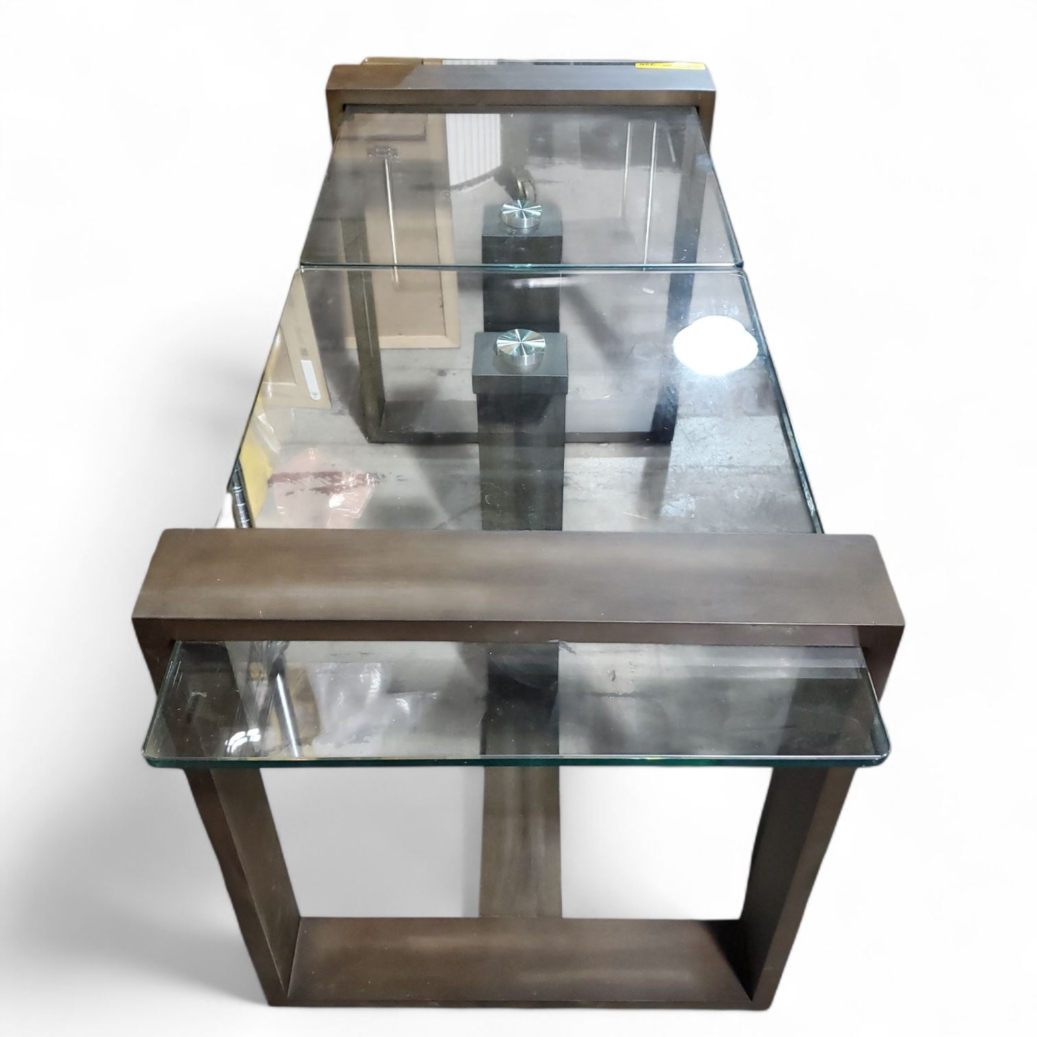Pair Glass Top Side Tables, Approx. H25" x 19.5" x 26" Each