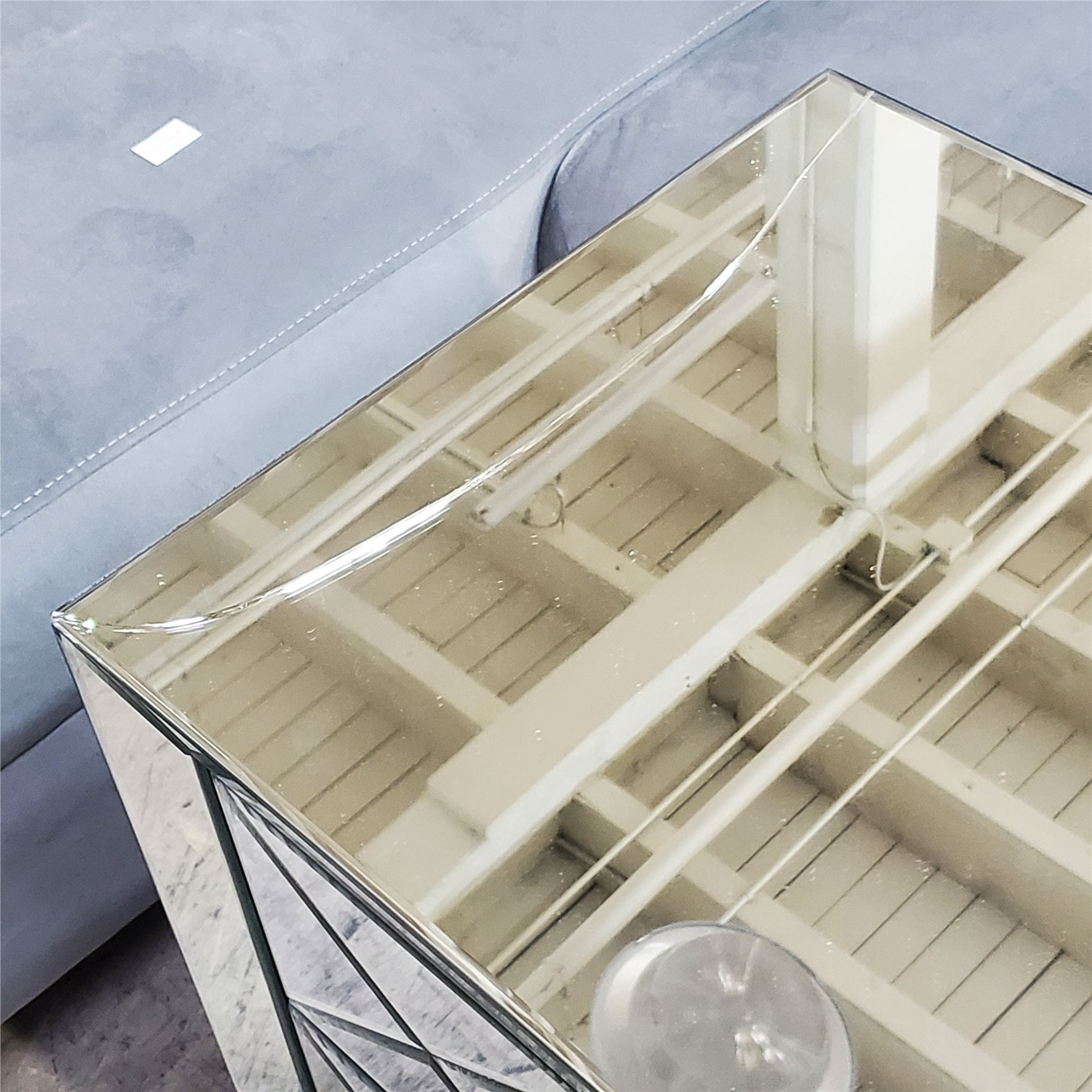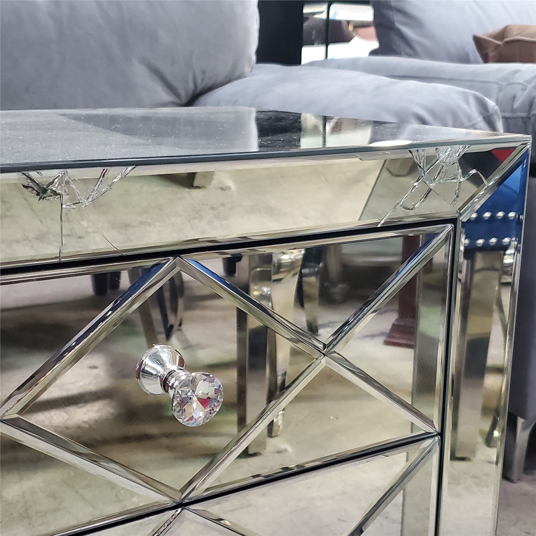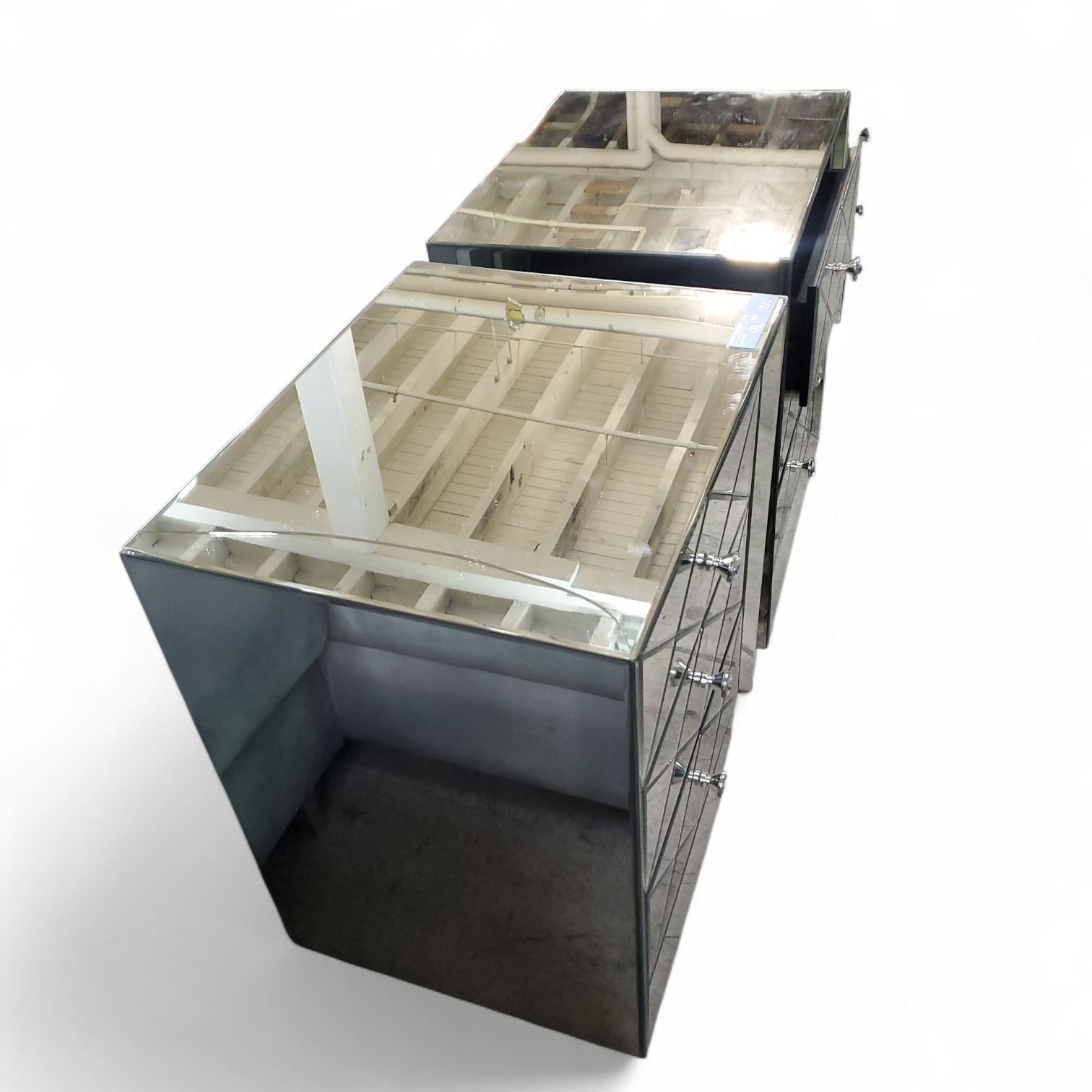 Pair Mirrored Three-Drawer Nightstands, H23.5" x W19.5" x D15.5" Each