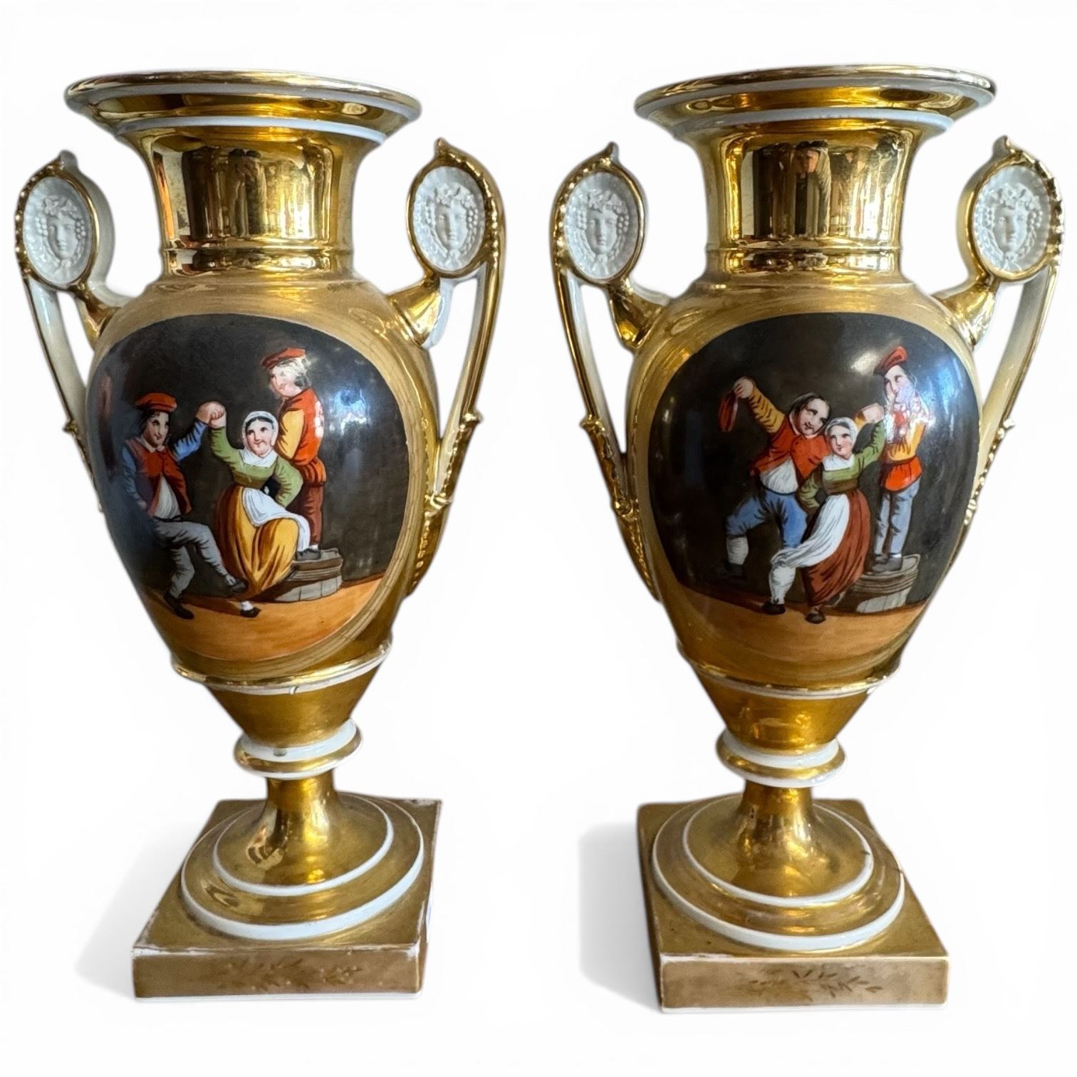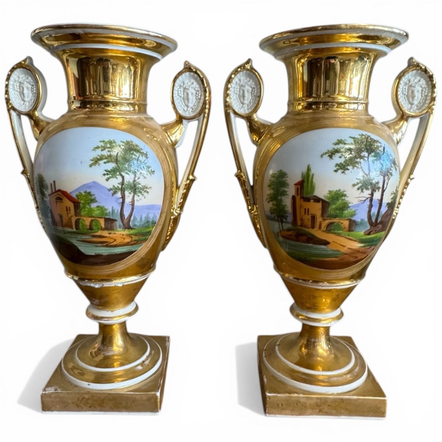 Pair of Antique Porcelain Vases * Some minor chips (12" tall)