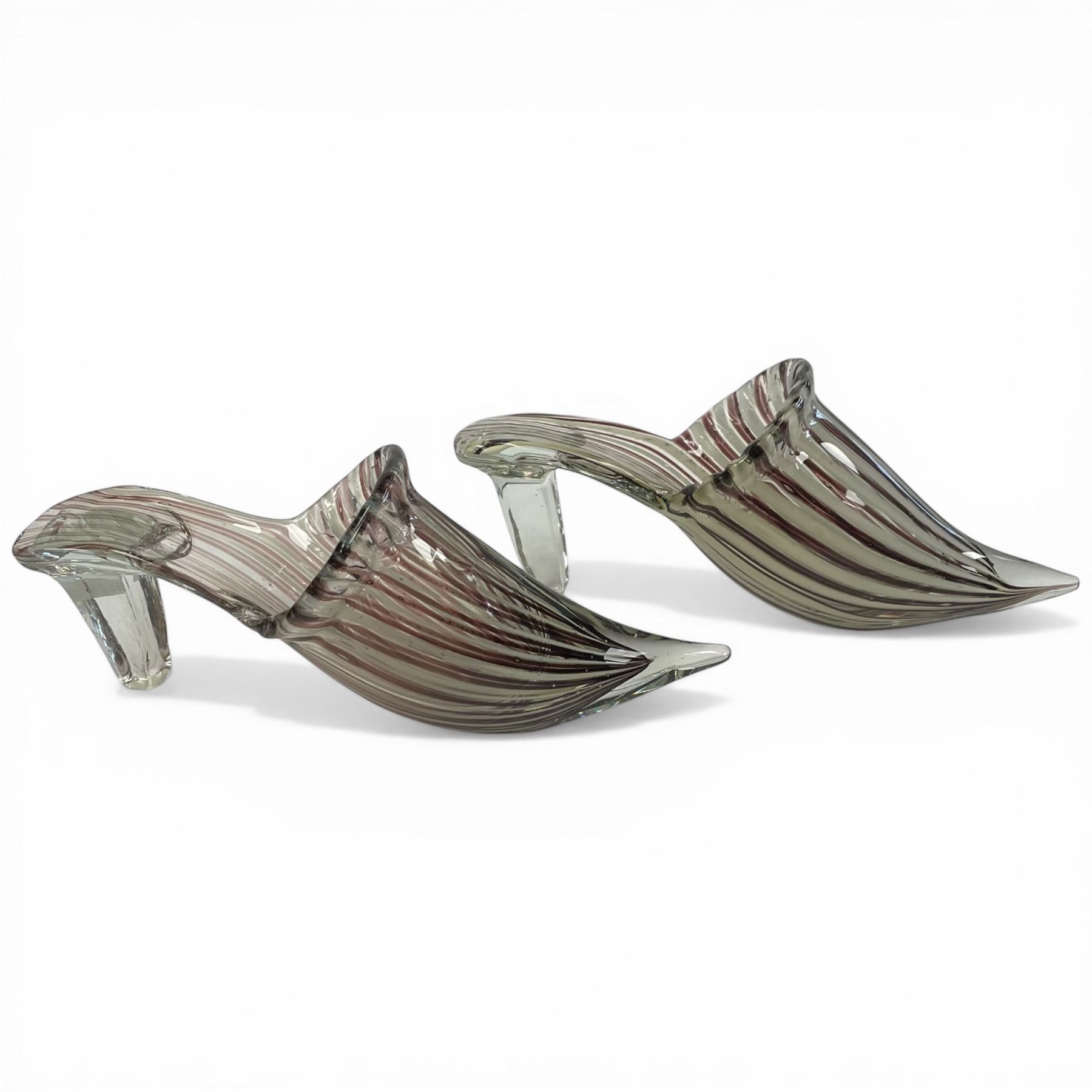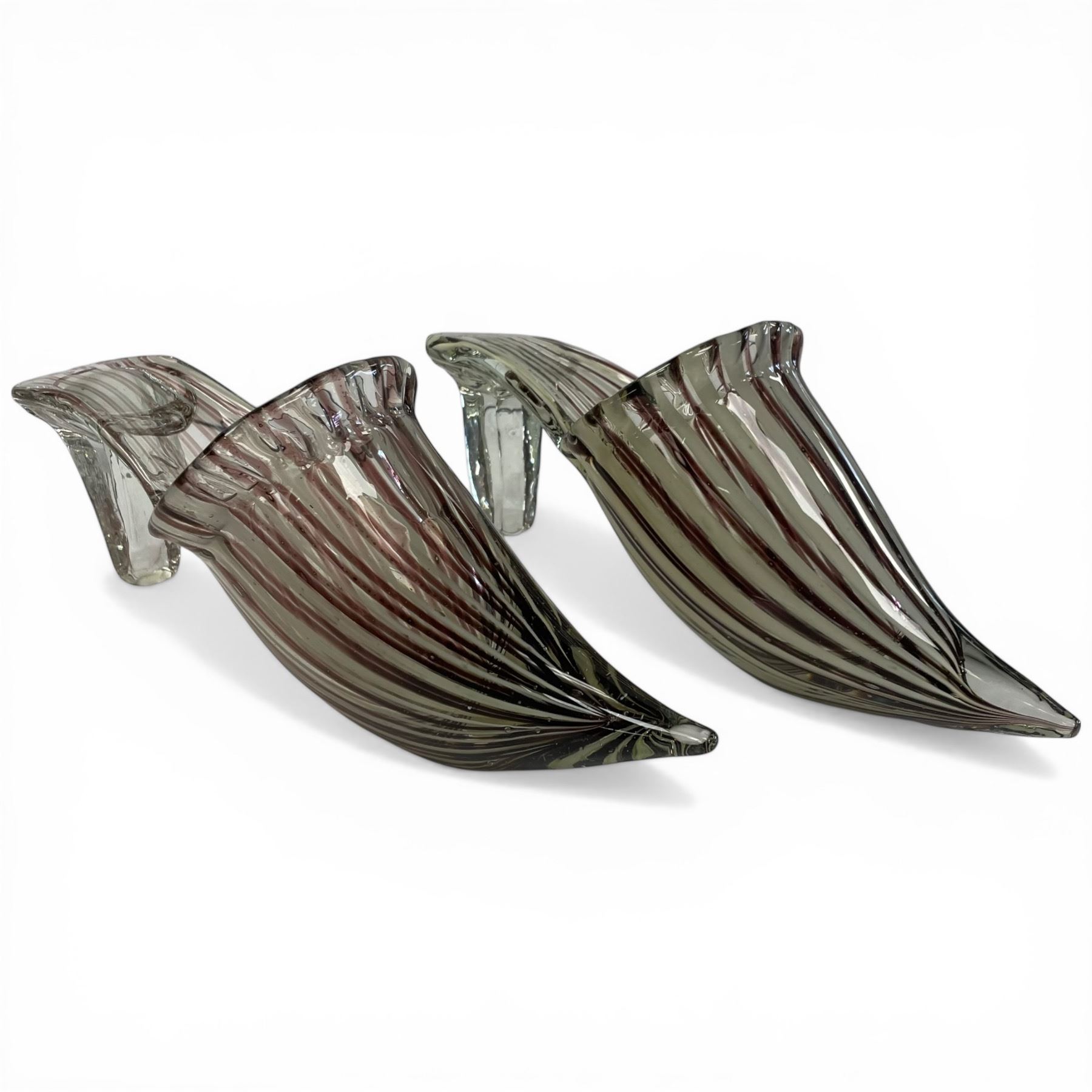 Pair of Art Glass Shoes (11" long x 4" x 5" tall)