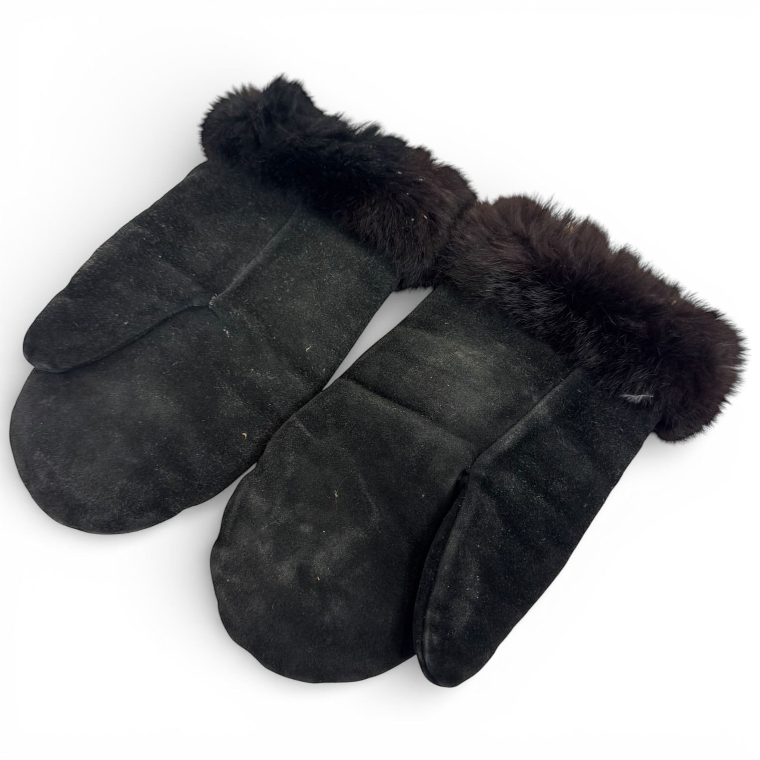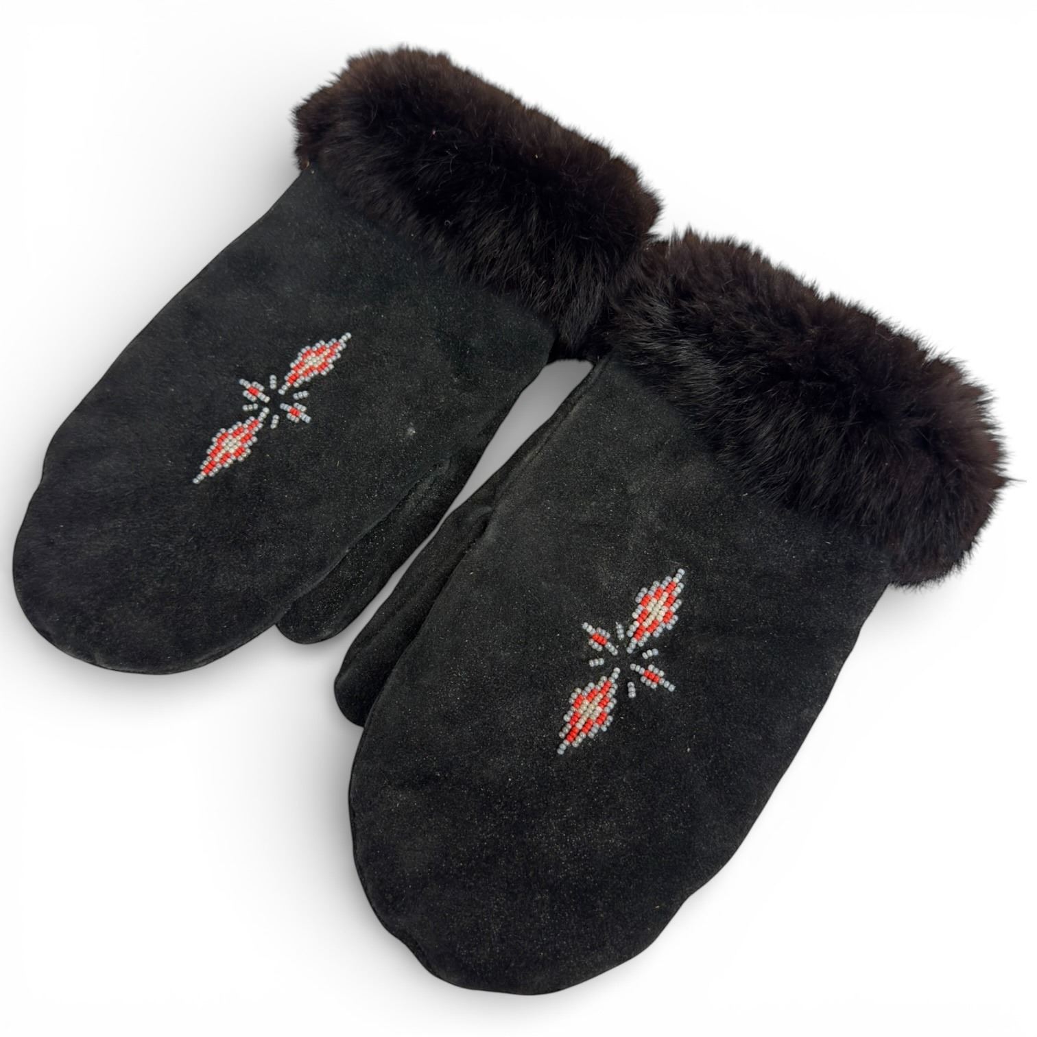 Pair of Beaded and Fur Trimmed Mitts - Size Large