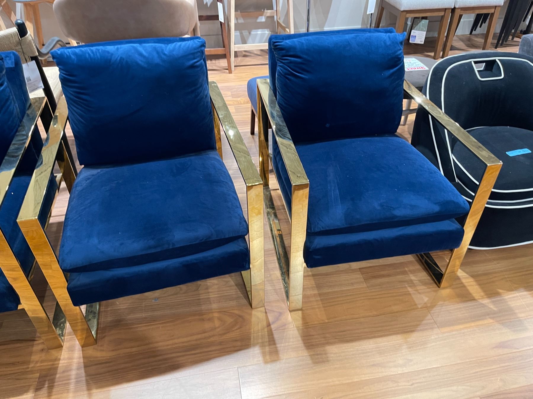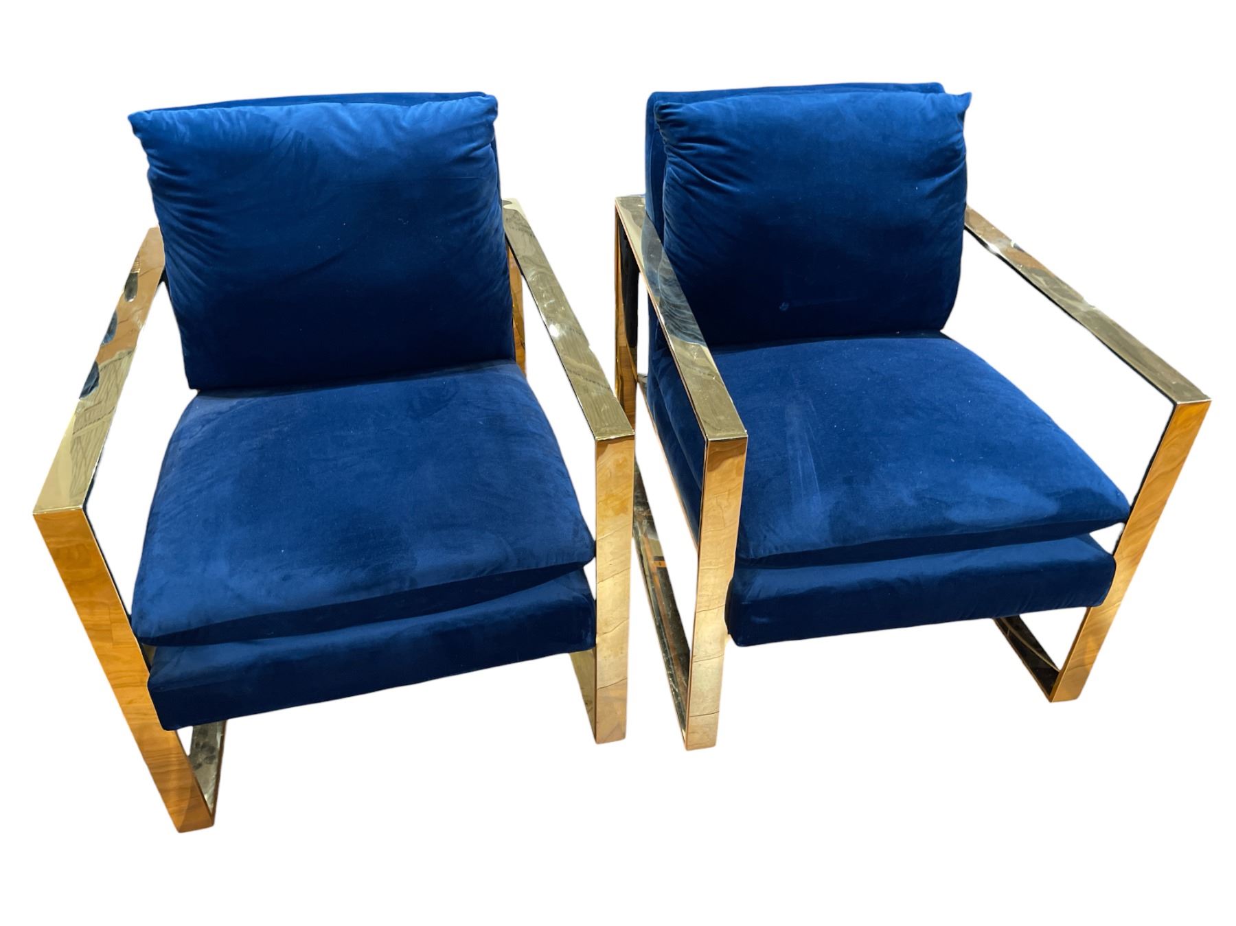 Pair of Blue Velvet Armchairs w/ Gold-Tone Frames