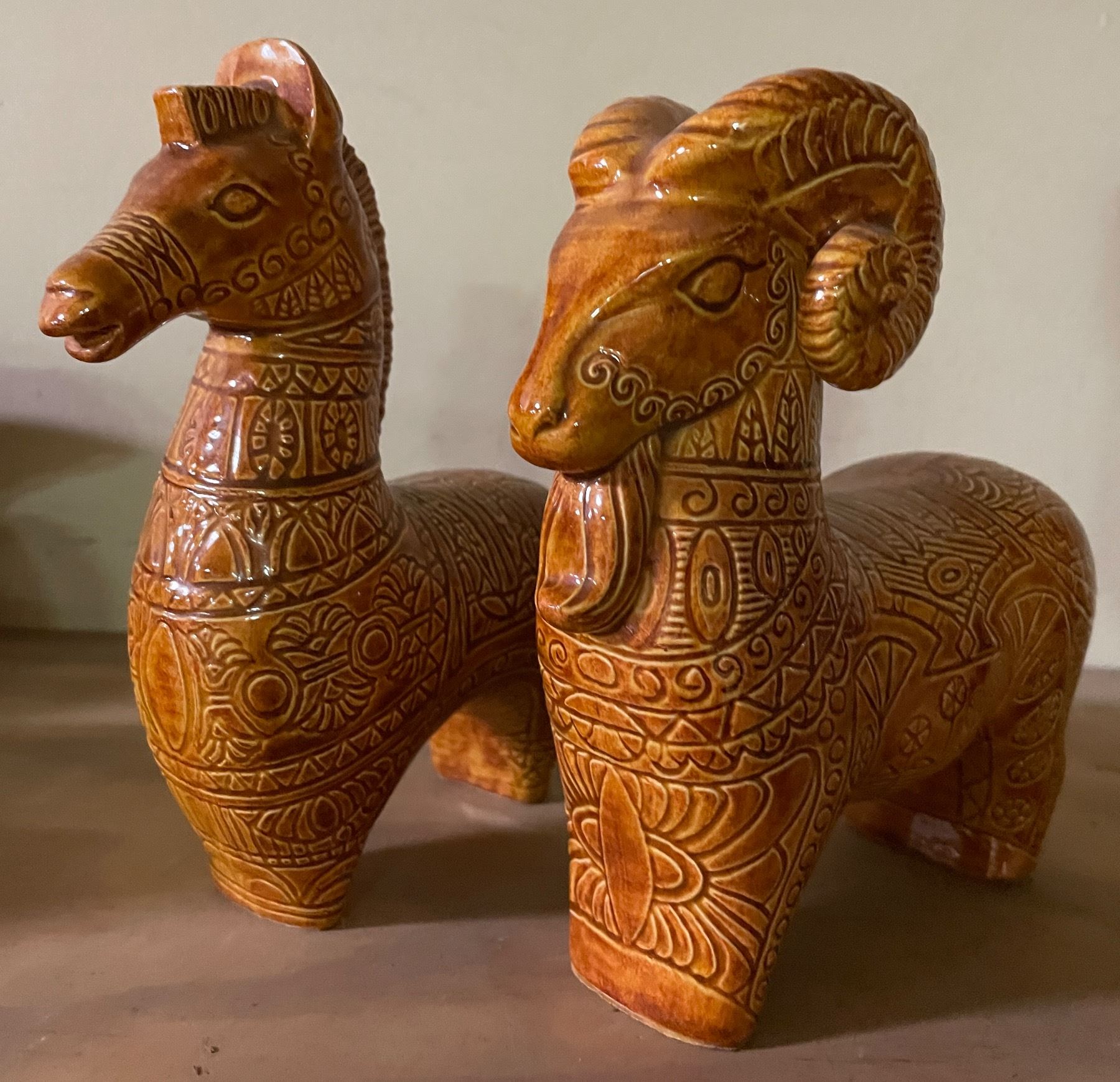 Pair of Ceramic Animal Figurines - Horse & Sheep