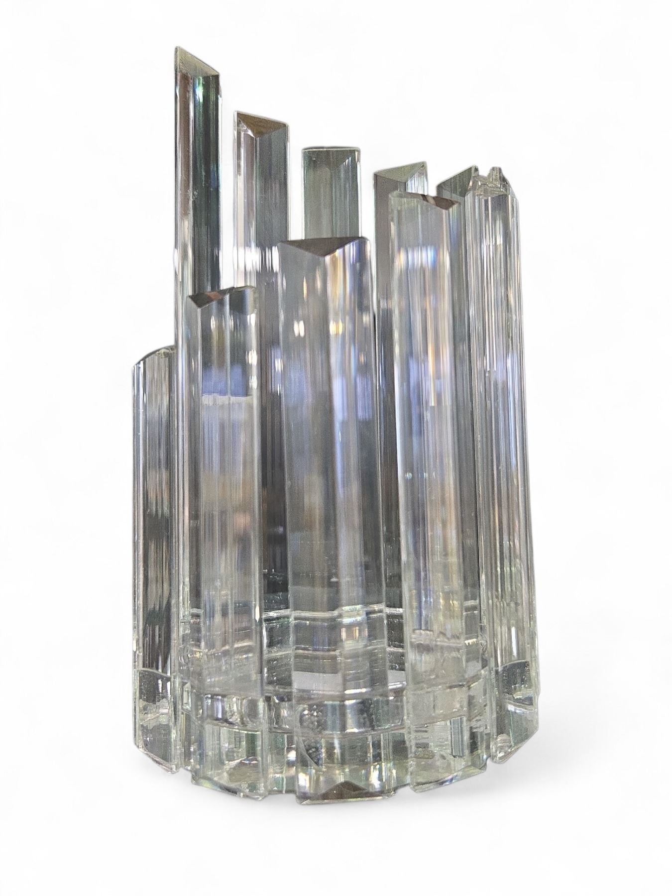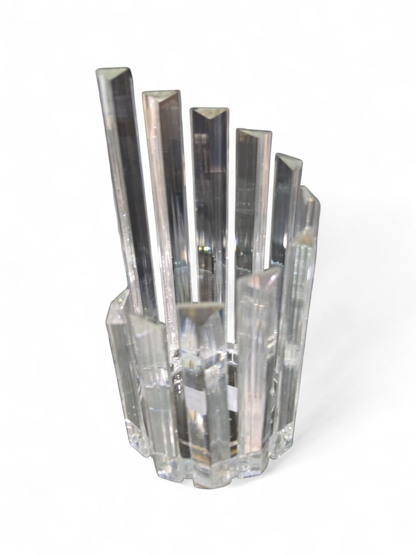 Pair of Charles Hollis Jones-Style Lucite "Skyscraper" Candle Holders - Each is 8" tall x 4.5" diameter