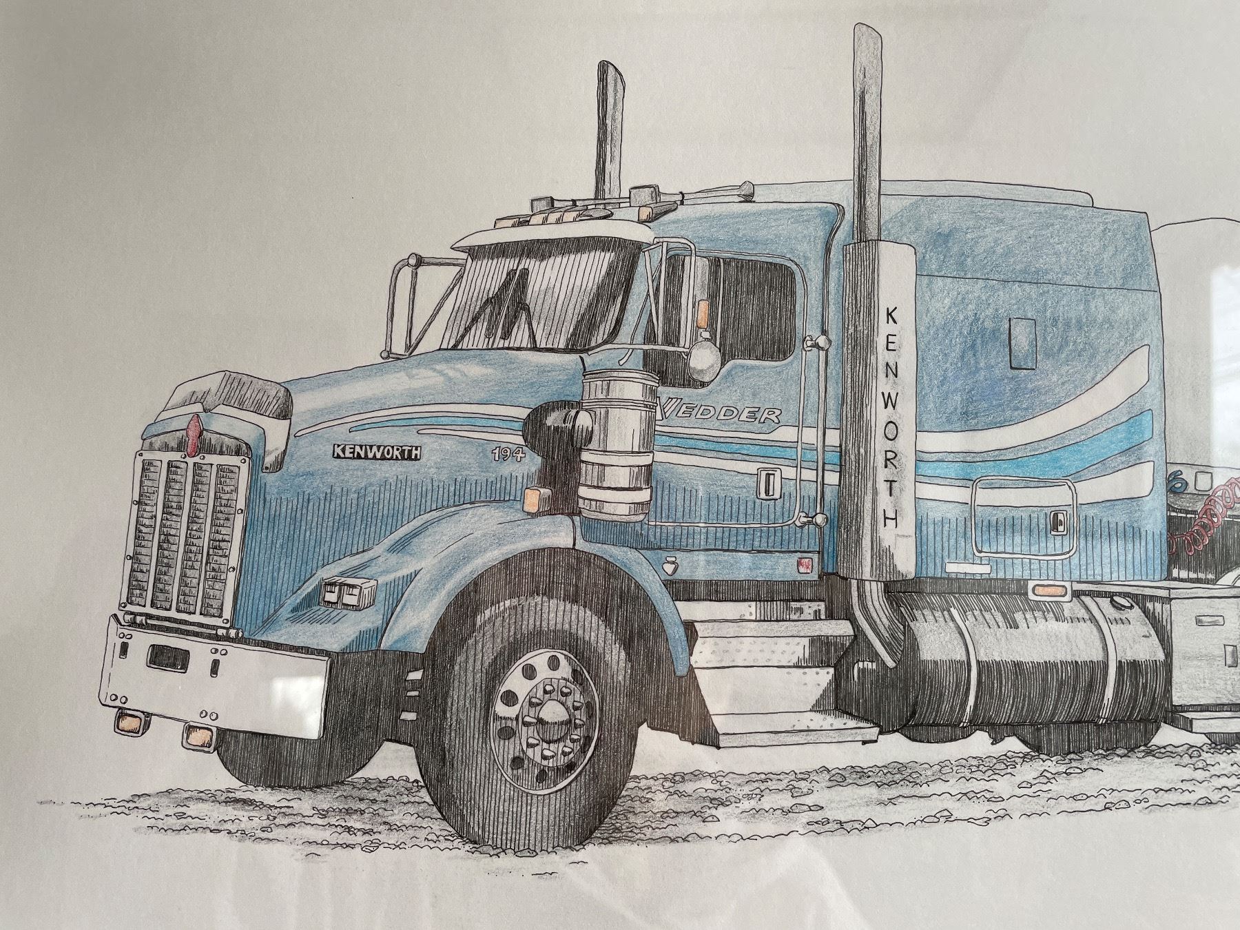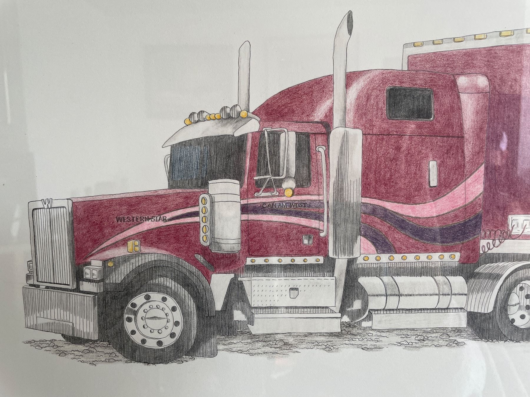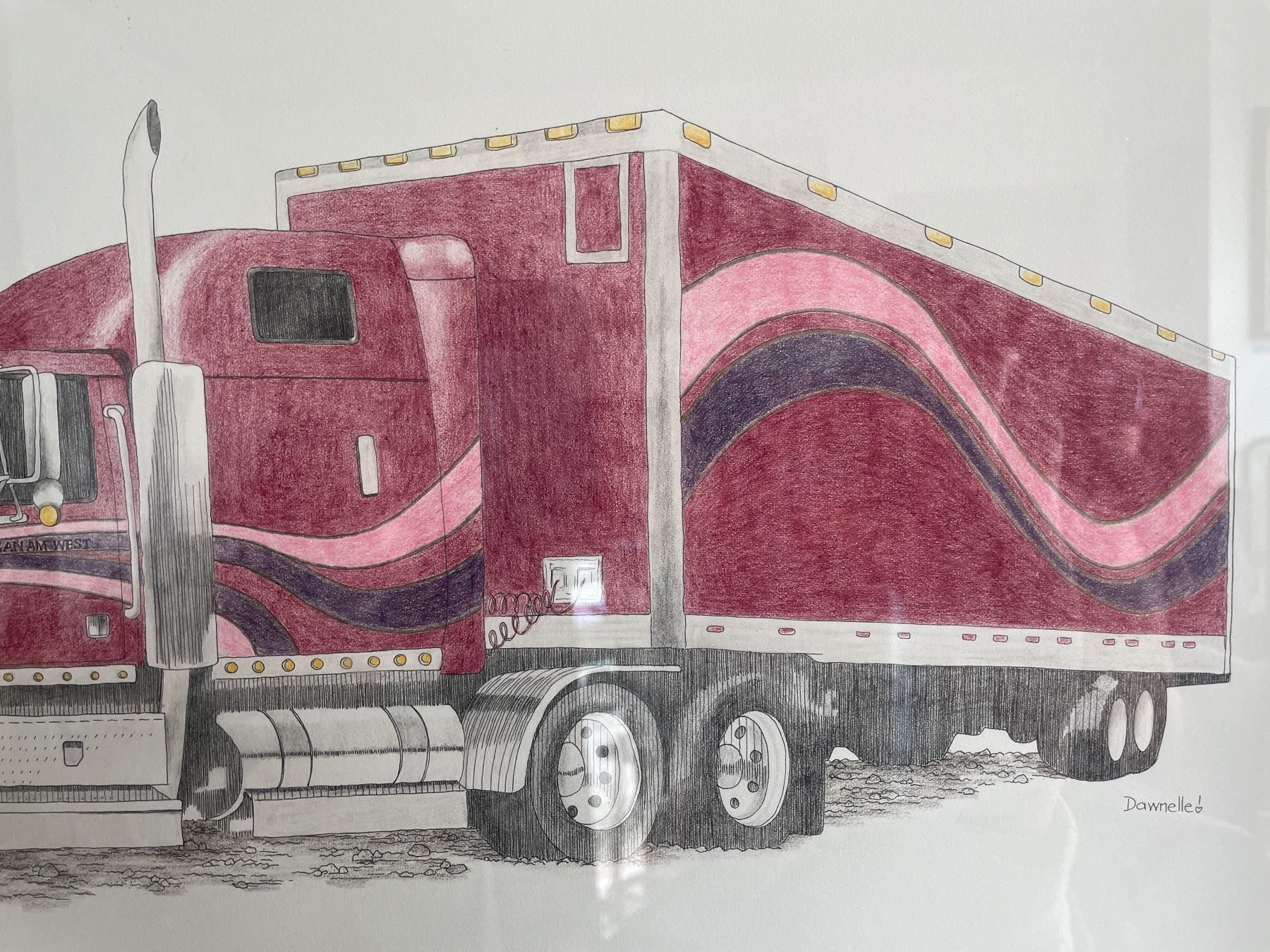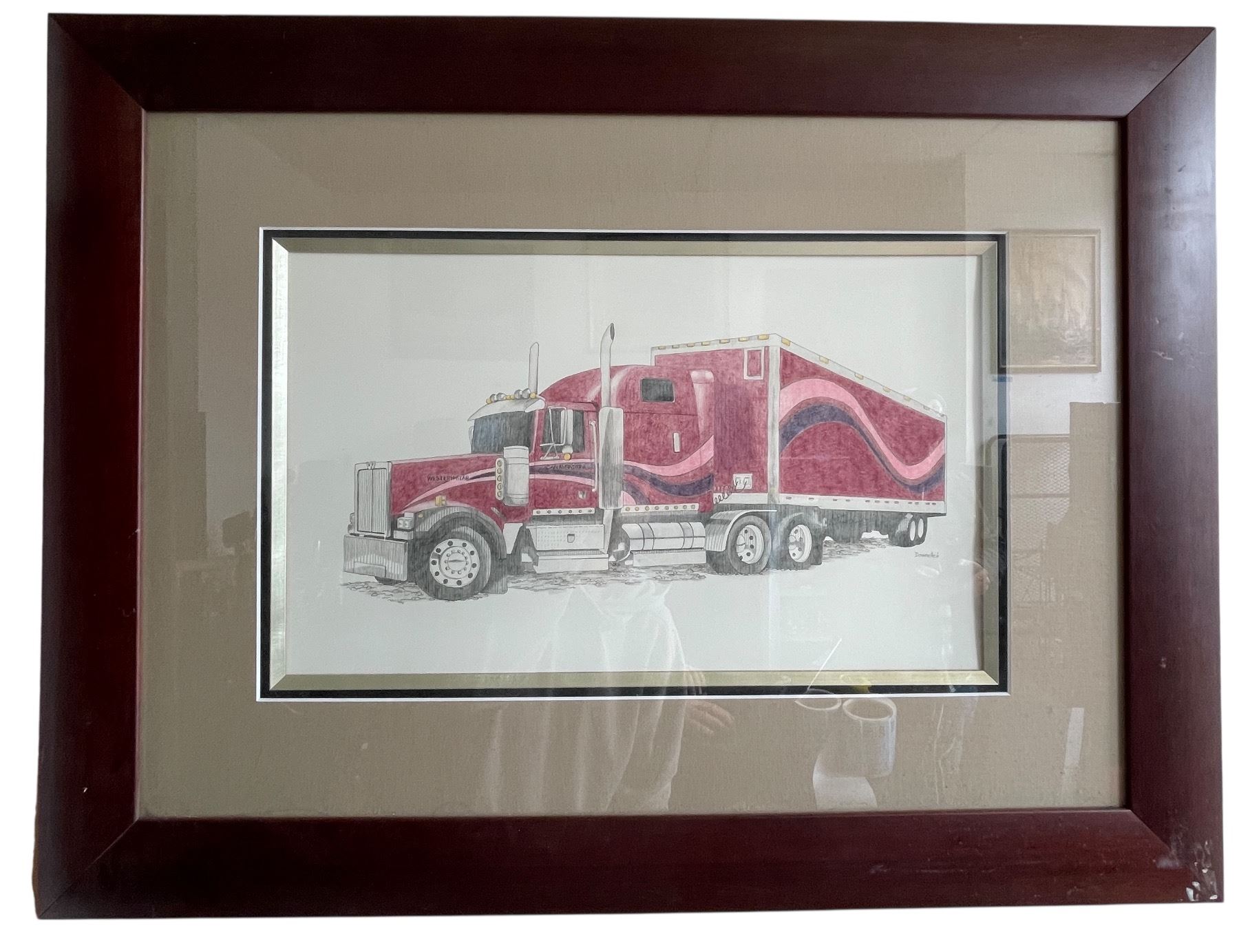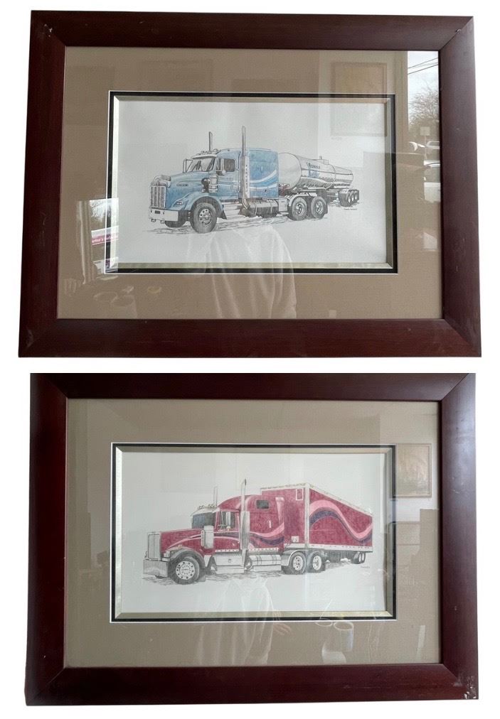 Pair of Framed Semi Truck Prints in Matching Wood Frames By Dawnelle