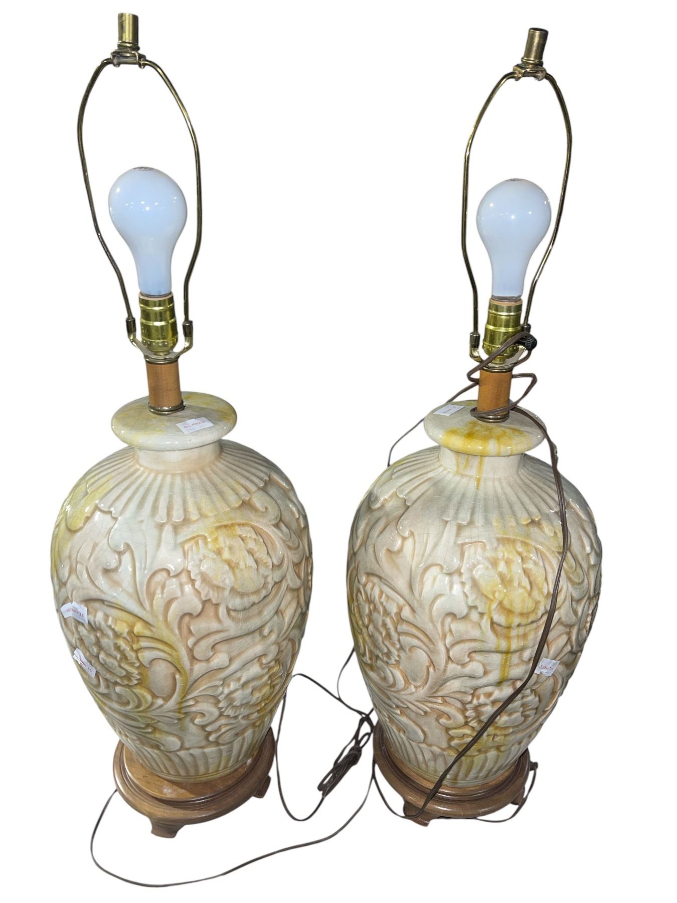 Pair of Large Ceremic Urn-Style Table Lamps (No Shades)