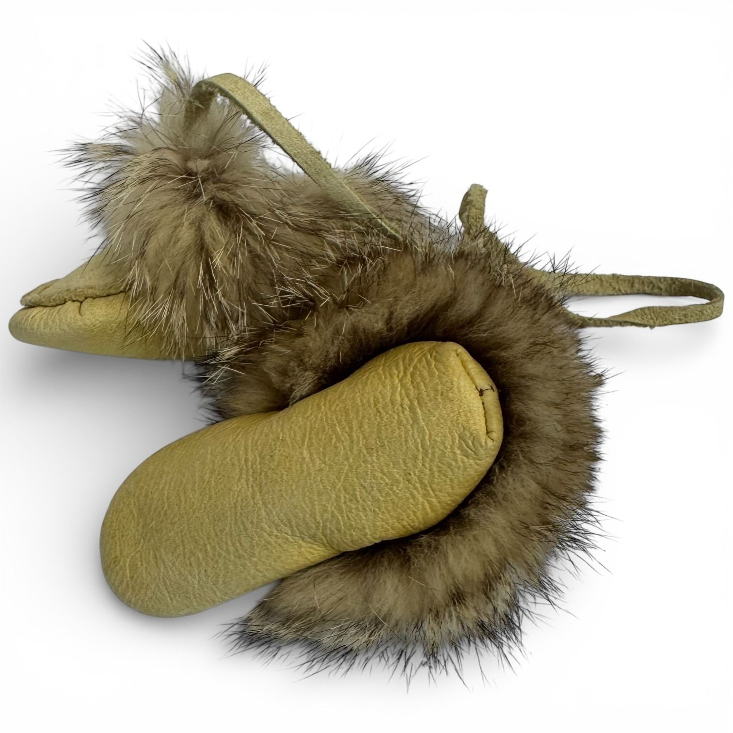 Pair of Leather & Fur Baby Moccasins & Faux Fur Baby Mitts