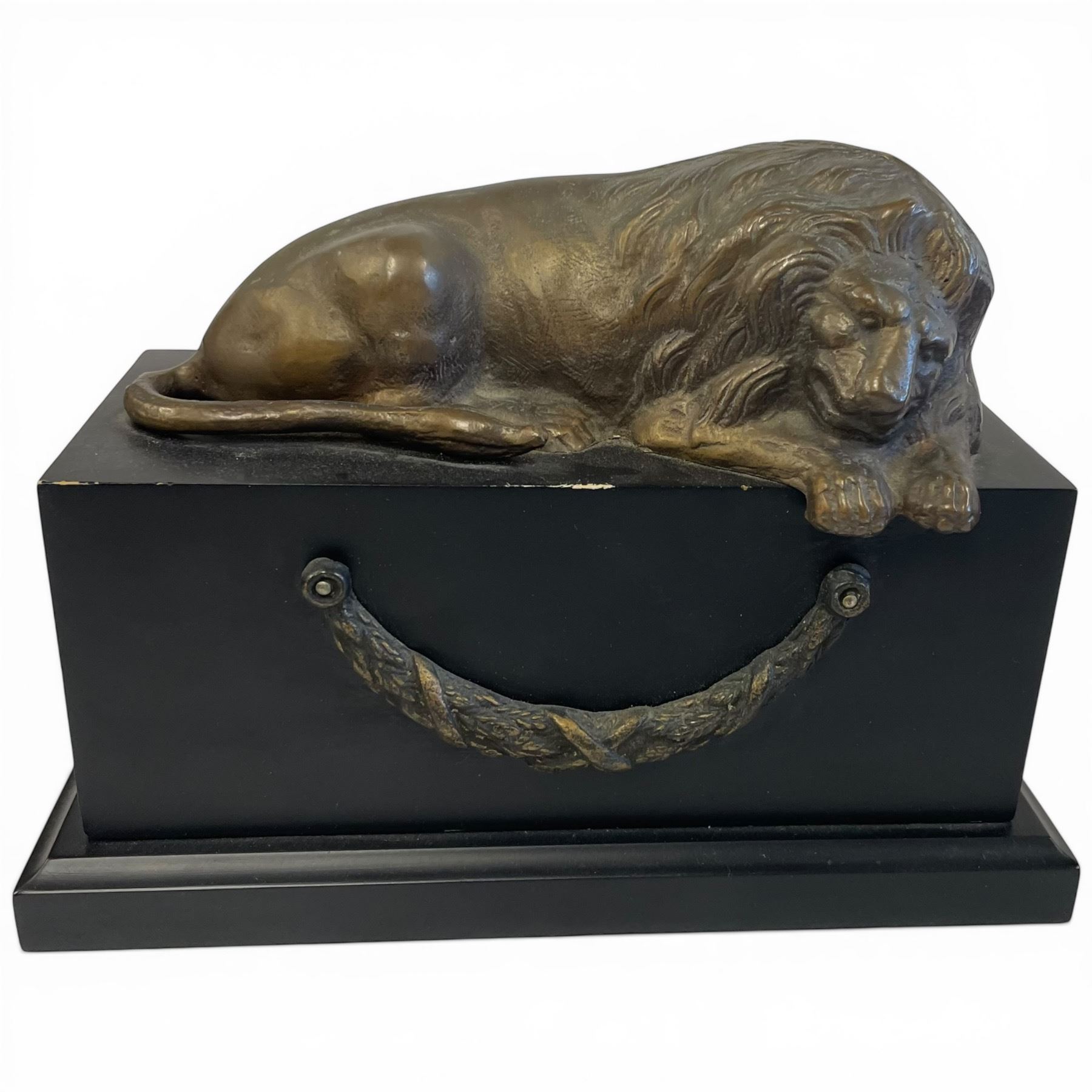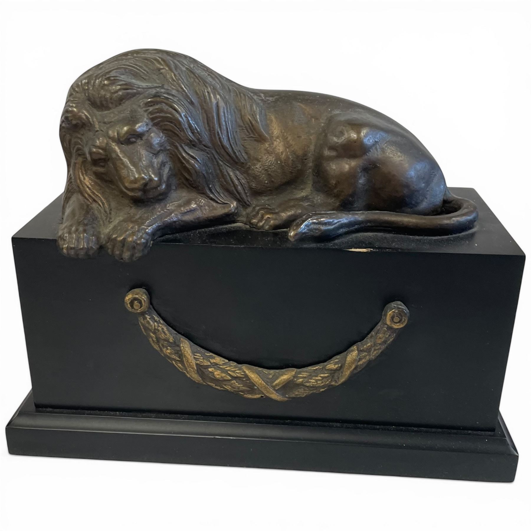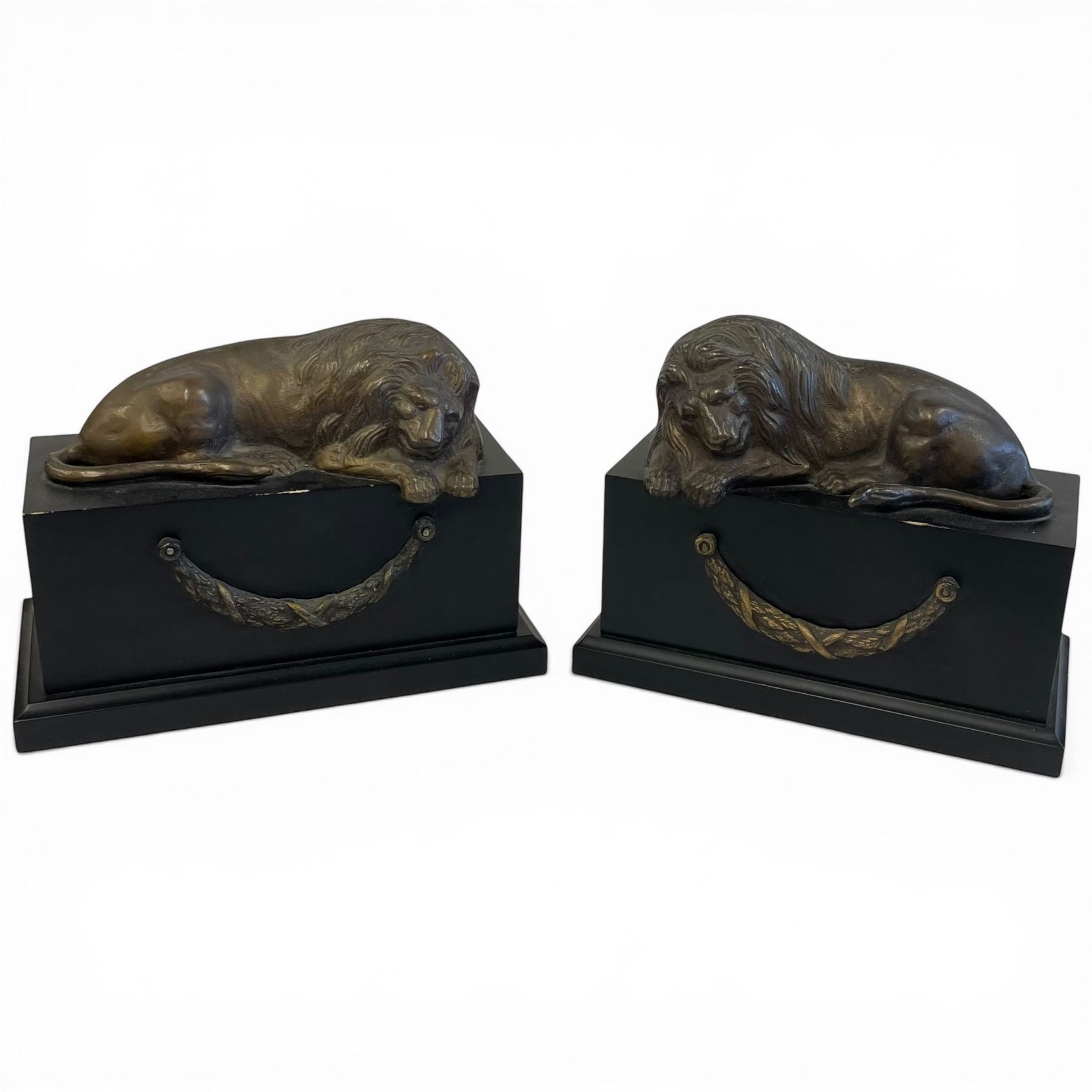 Pair of "Lion of Lucerne" Bronze Tone Bookends with Black Resin Bases (4" x 9" x 7" tall)