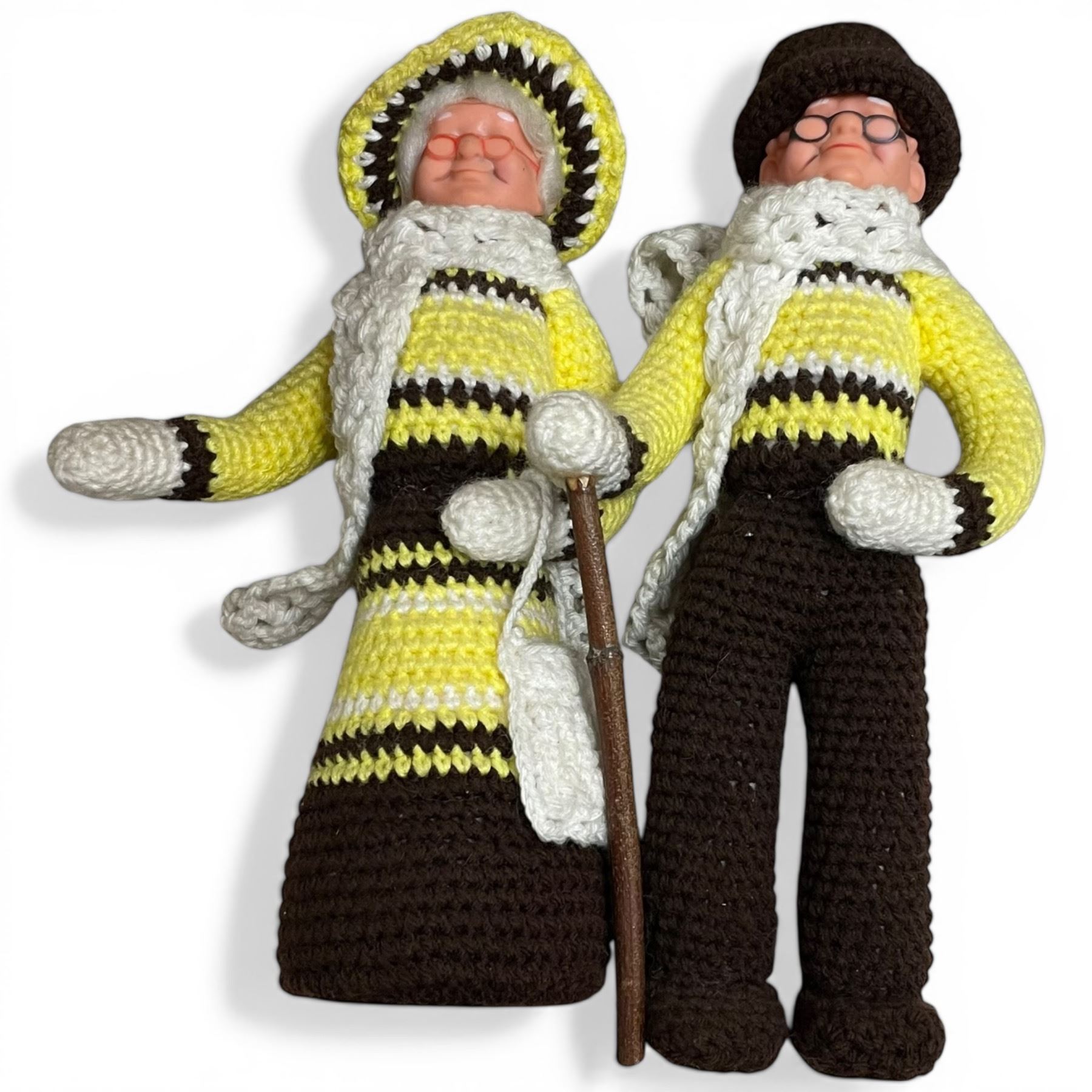 Pair of Mom & Pop Dolls with Crocheted Clothing