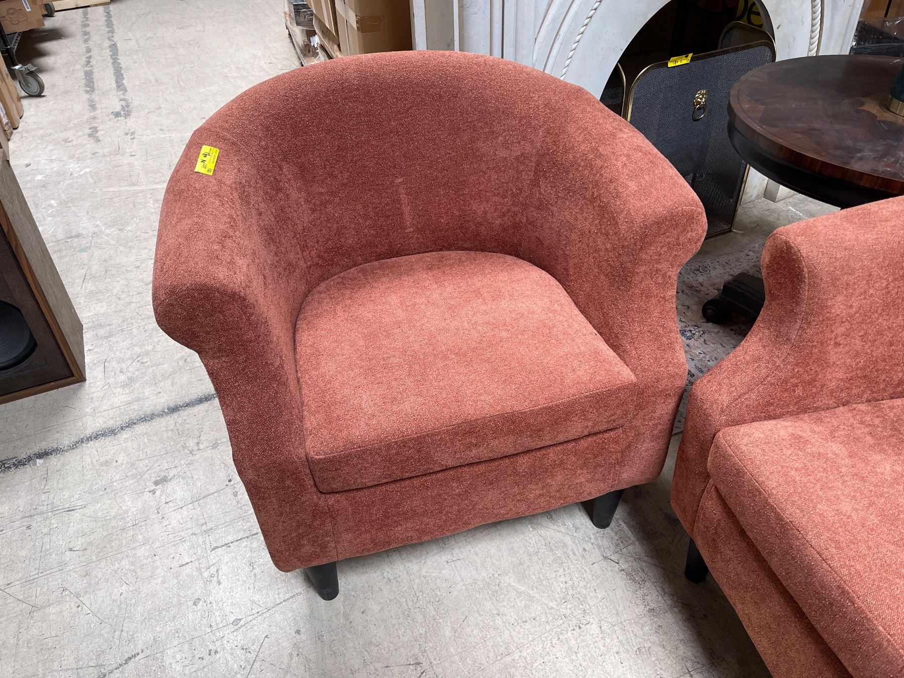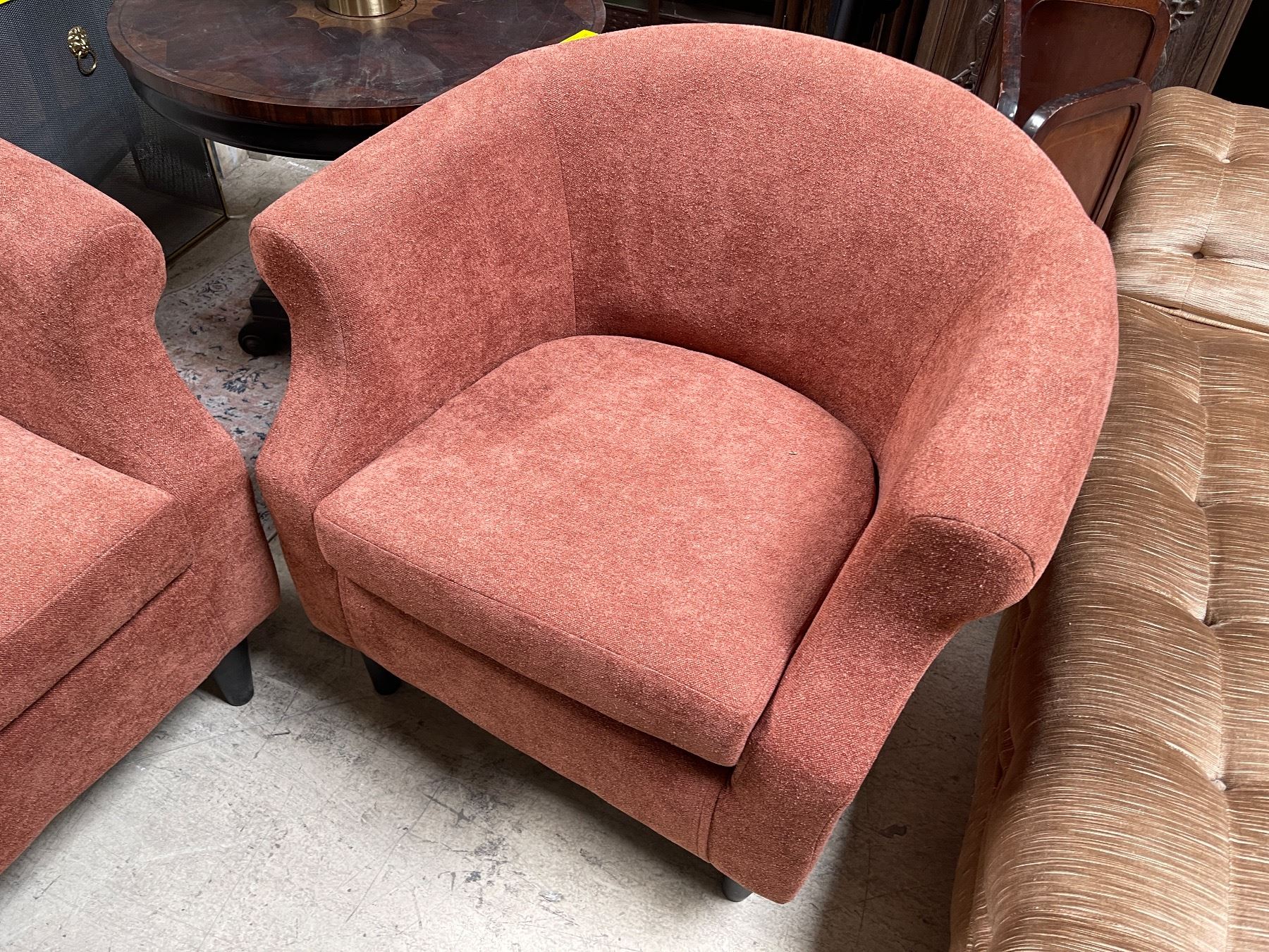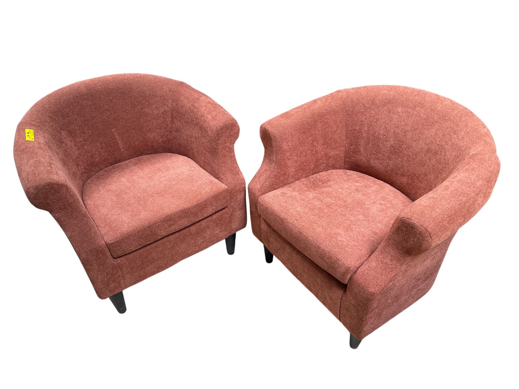 Pair of Rust Orange Upholstered Tub Chairs, H31" x W32" x D24 Each