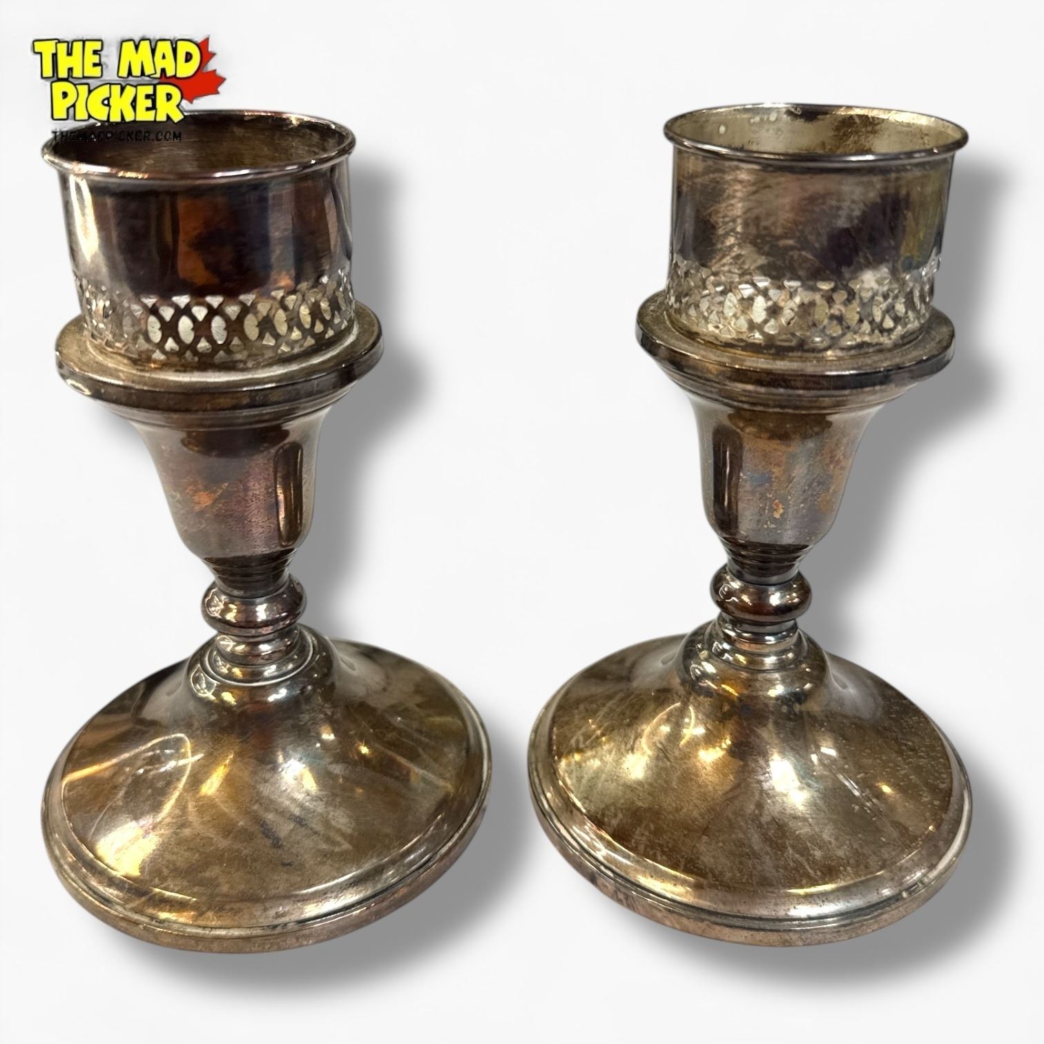 Pair of Towels Sterling Silver Weighted Candlesticks - Total weight: 593 grams