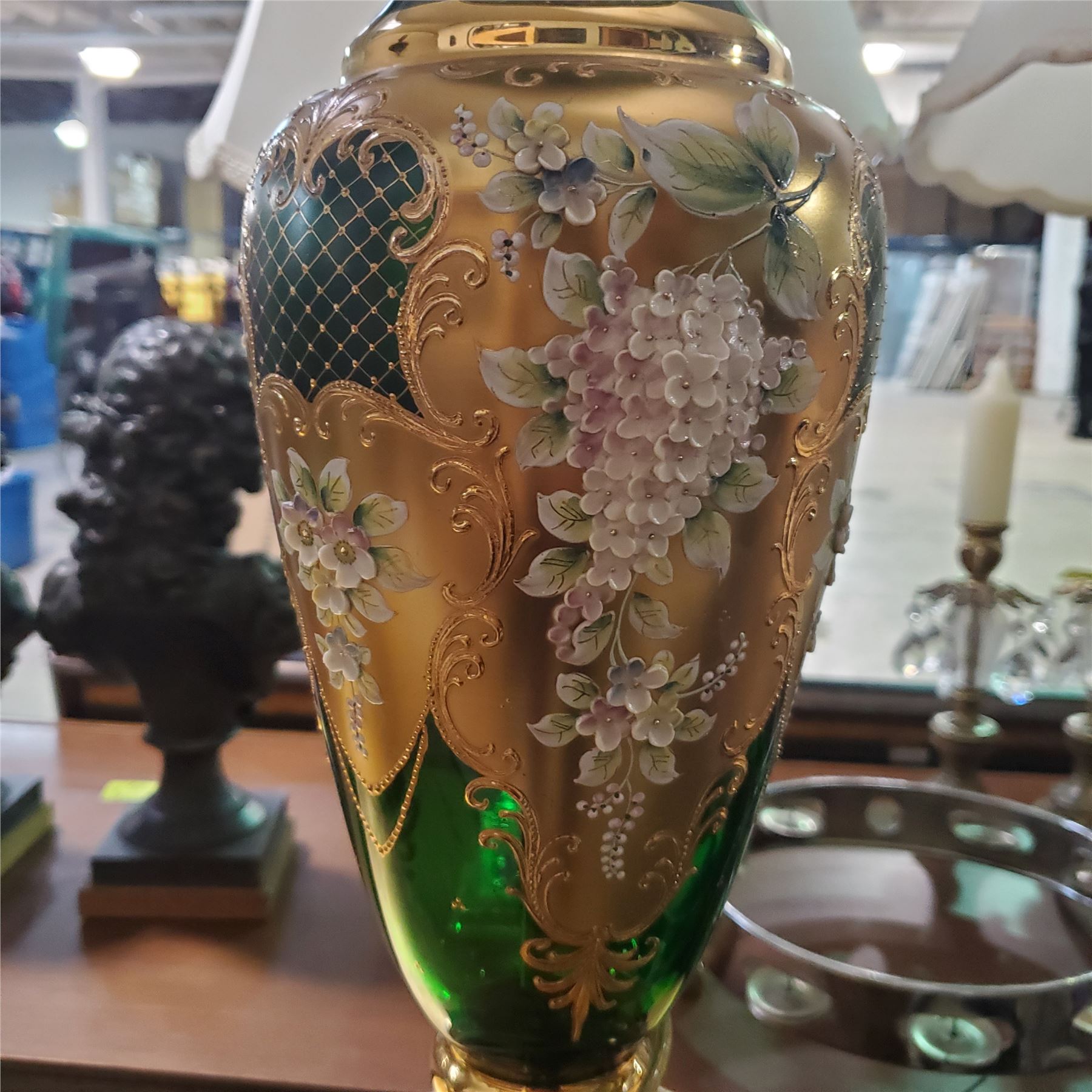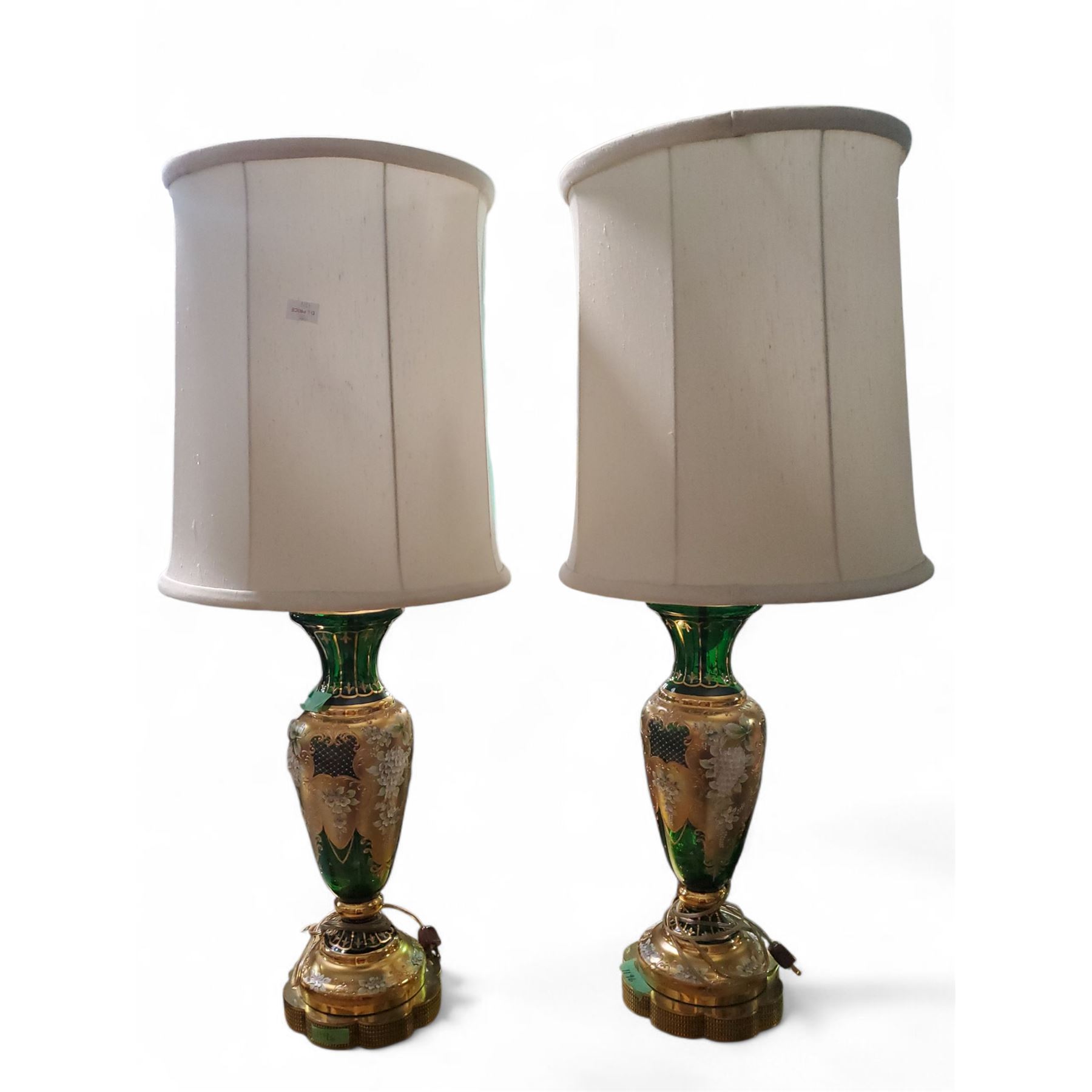 Pair of Vintage Austria Moser Style Glass Lamps, Approx. H38.5" x Base Dia. 8" Each