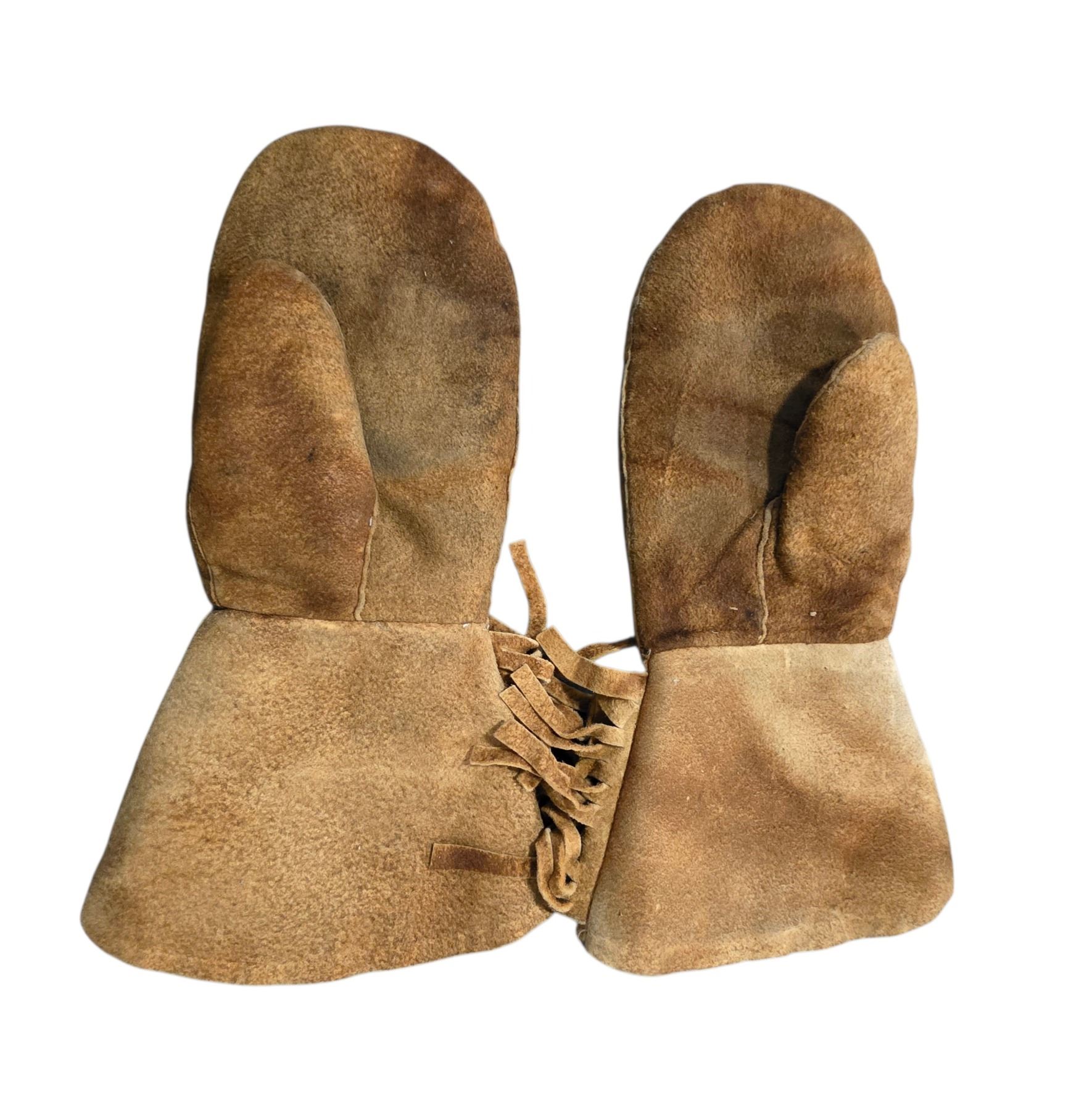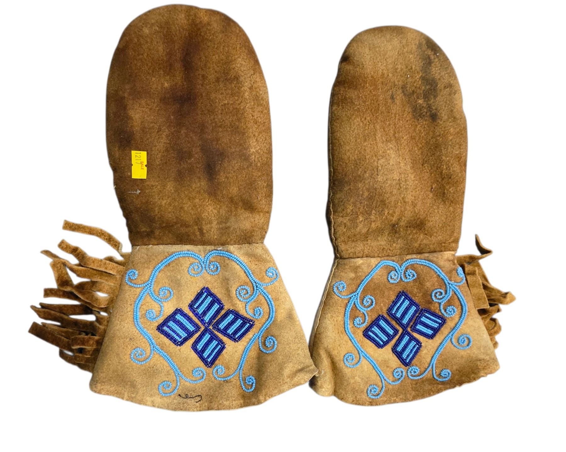 Pair of Vintage Beaded Hide Mittens - 14.5" x 9"