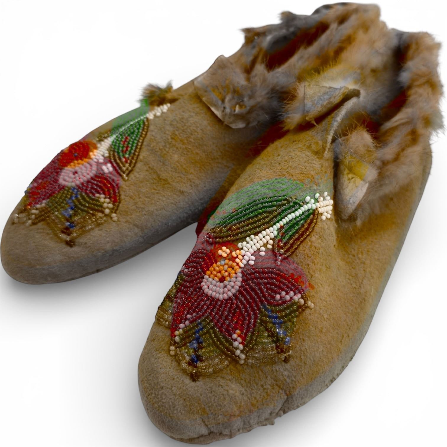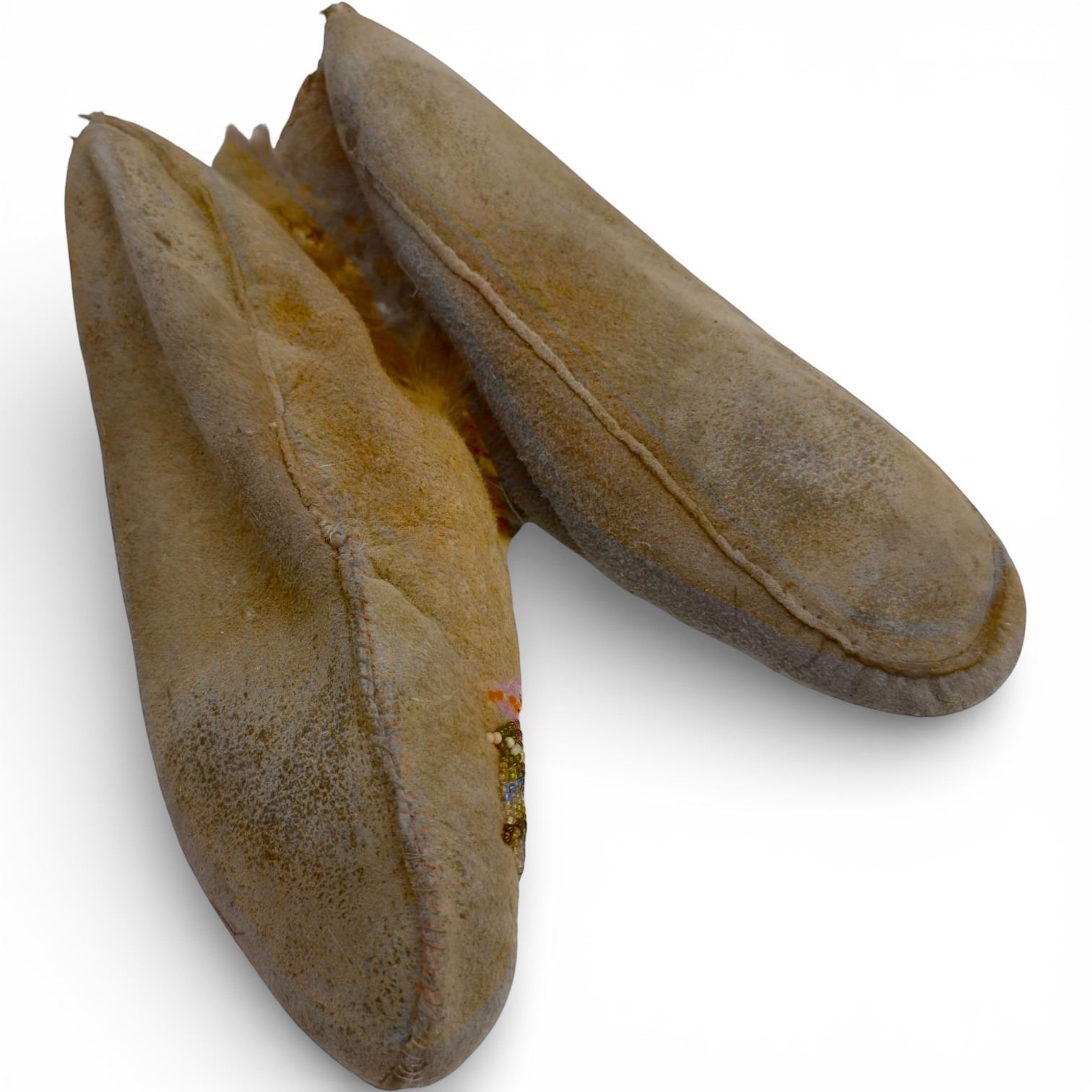 Pair of Vintage Beaded Leather Moccasins * Believed to be Ojibwe Design * 10" long sole