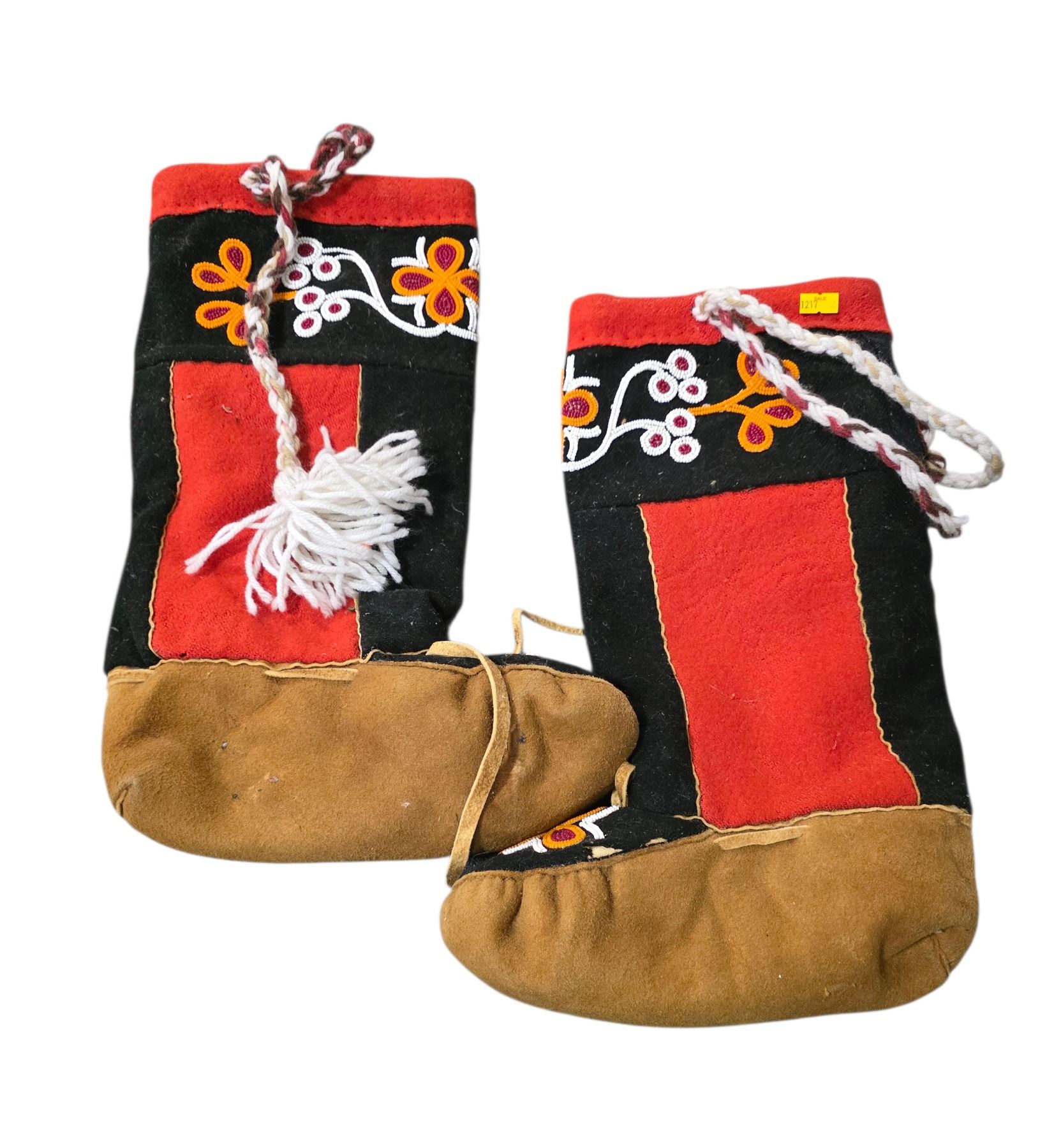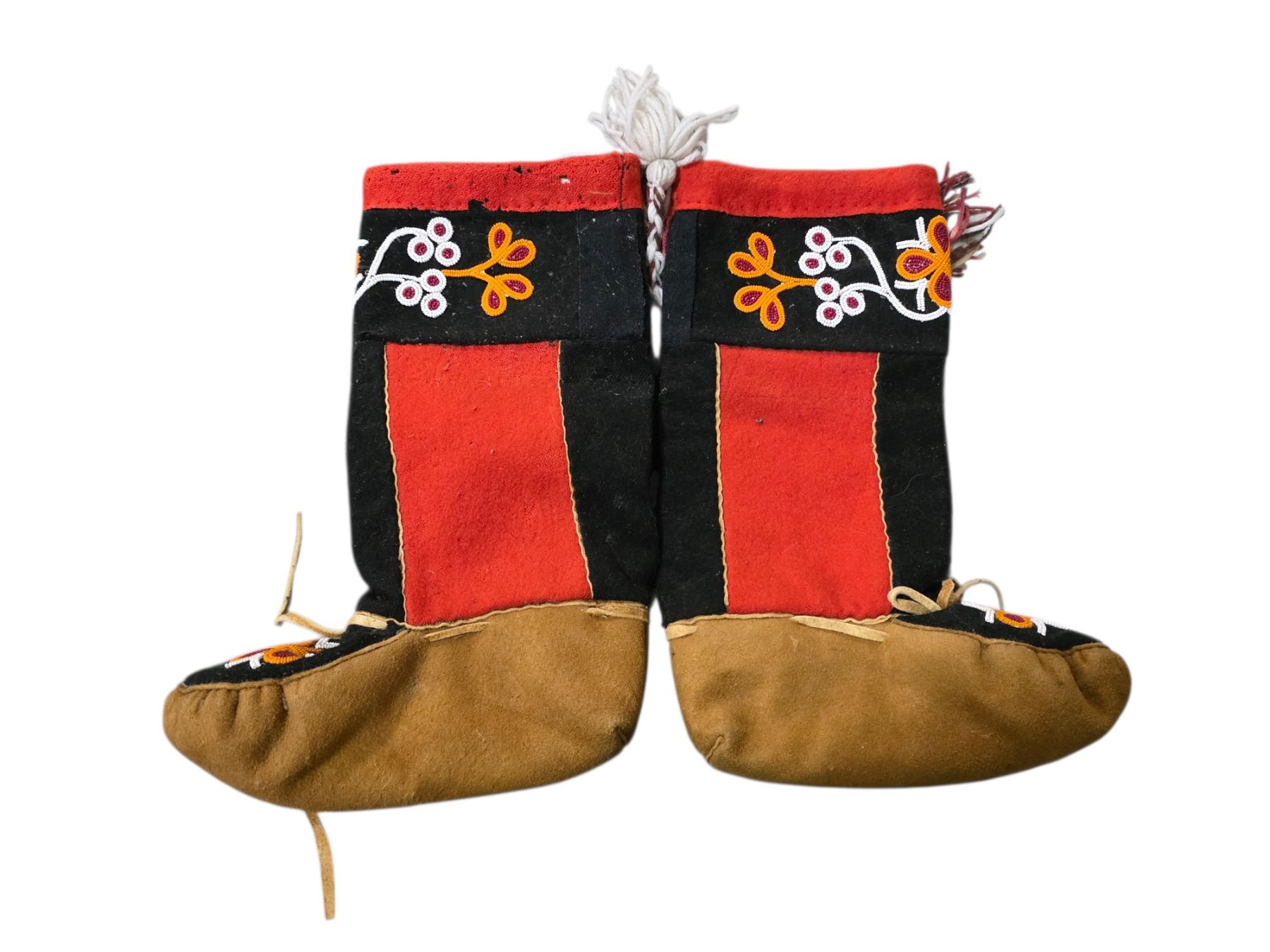 Pair of Vintage Beaded Wool & Suede Mukluks, H15" Each