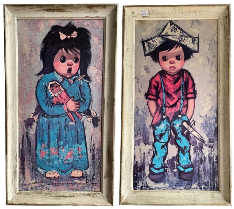 Pair of Vintage Big-Eye Children Prints in Matching Frames