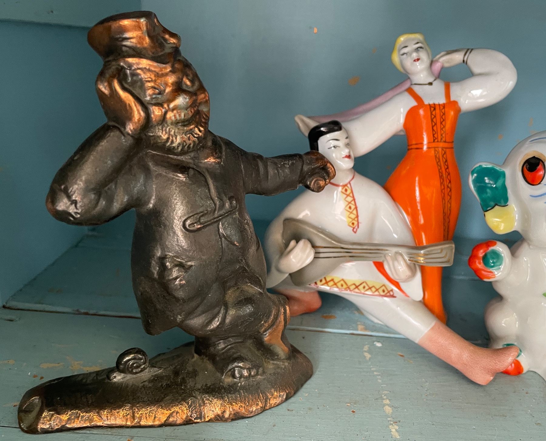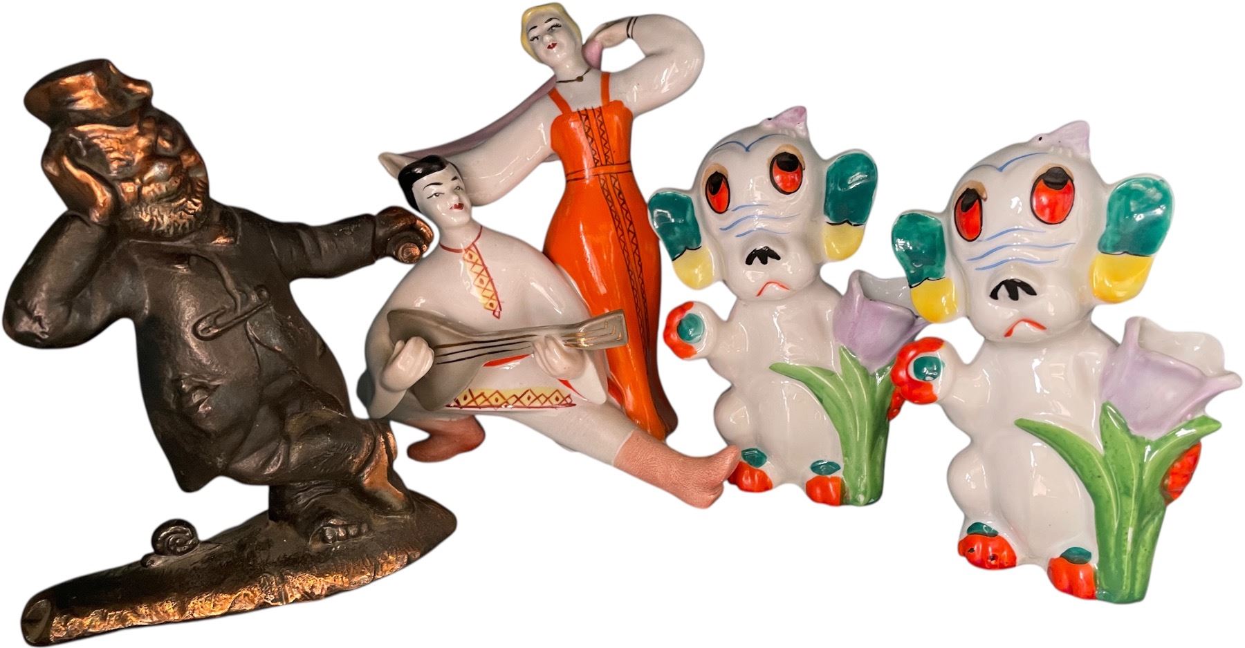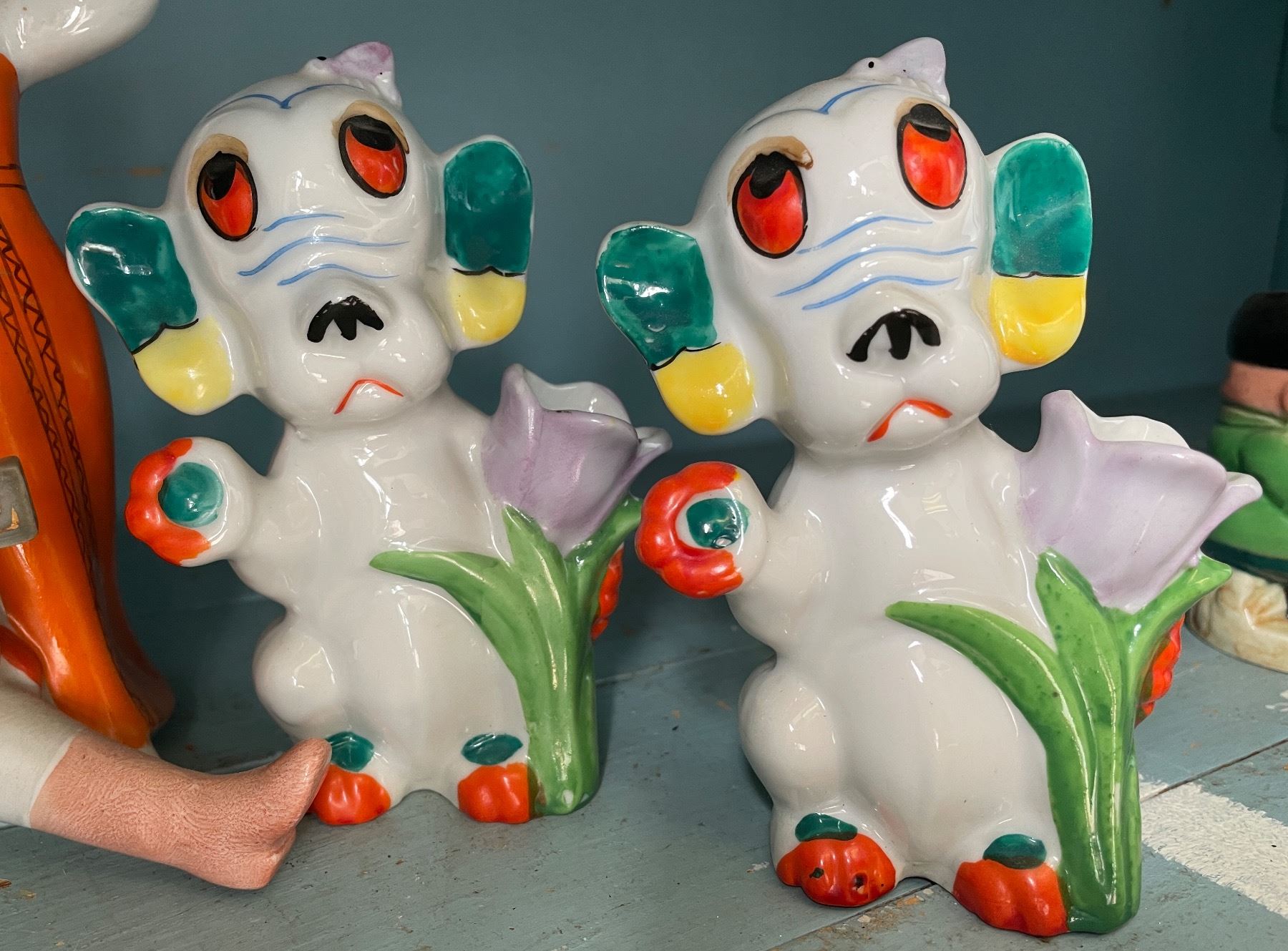 Pair of Vintage Elephant Ceramic Planters with Additional Figurines