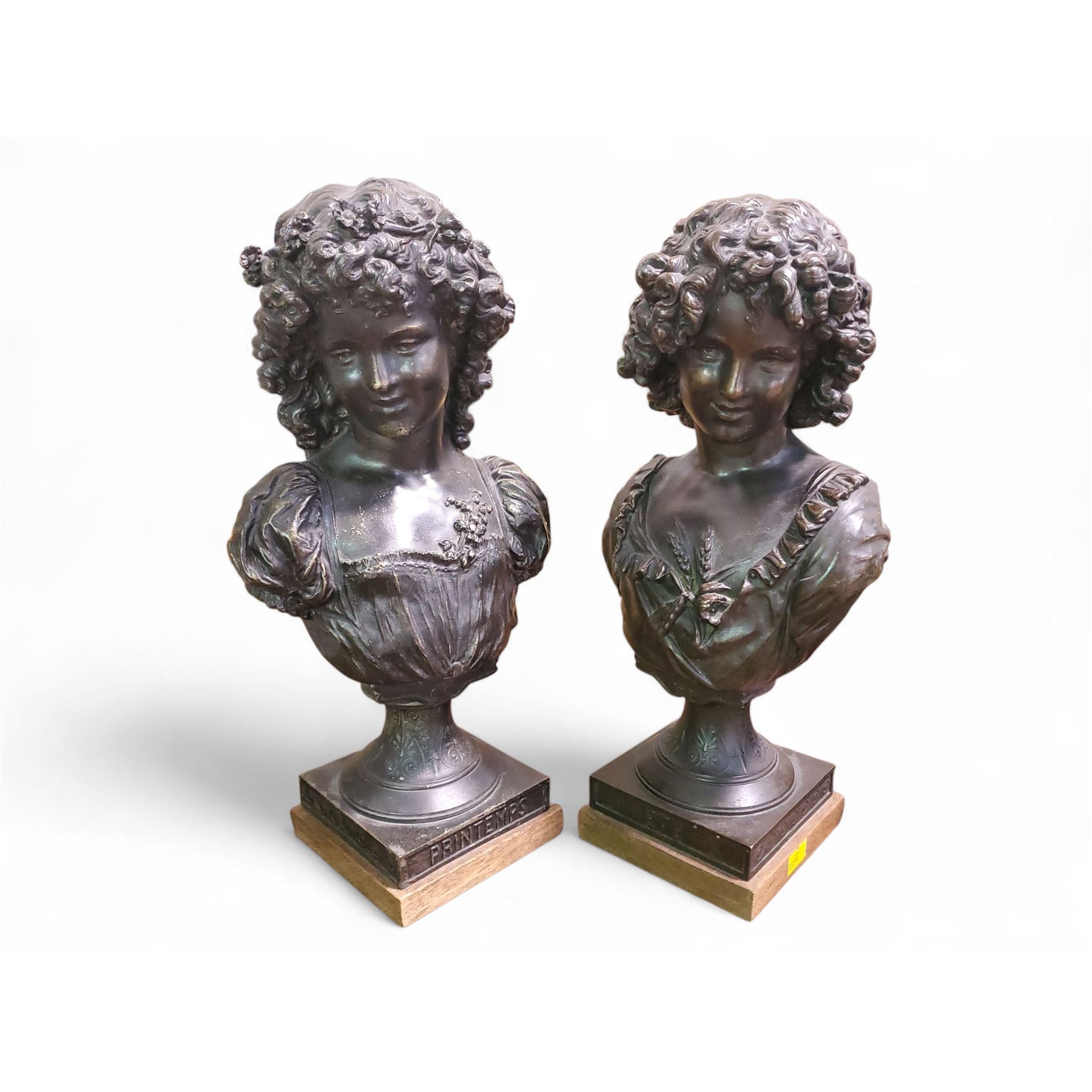 Pair of Vintage French-Style Busts "Printemps" (Spring) and "Été" (Summer) - Approx. H14.5 x Base 5" x 5"