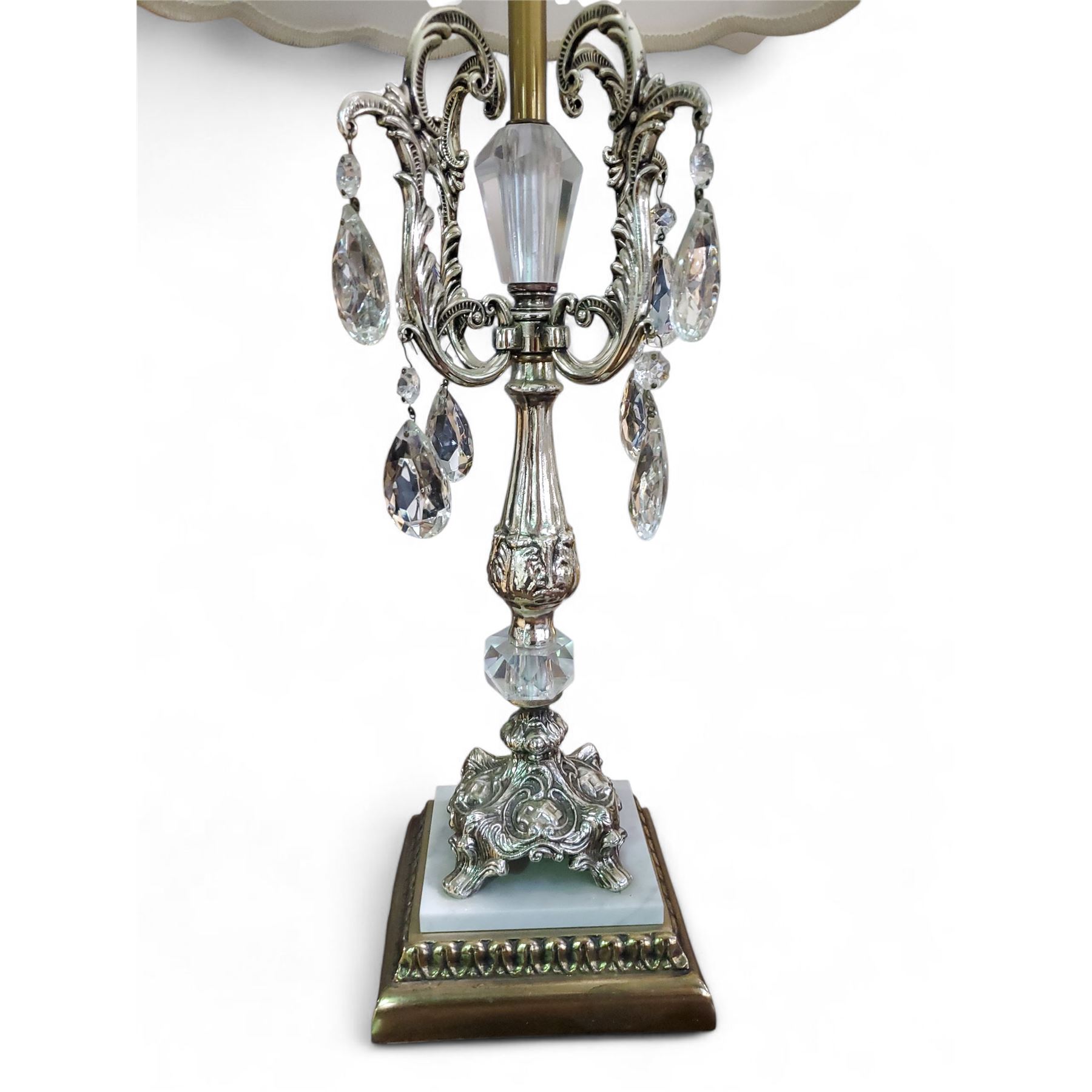 Pair of Vintage Glass Crystal Table Lamps - Approx. H 32" x Base Dia. 6" Each