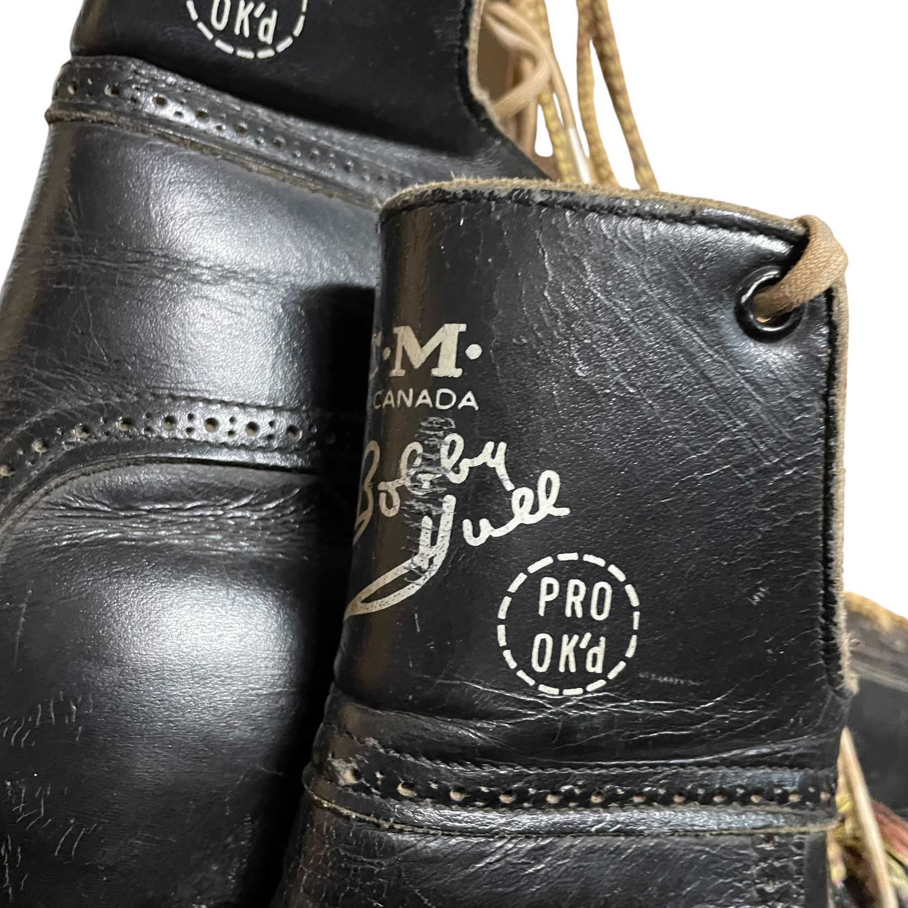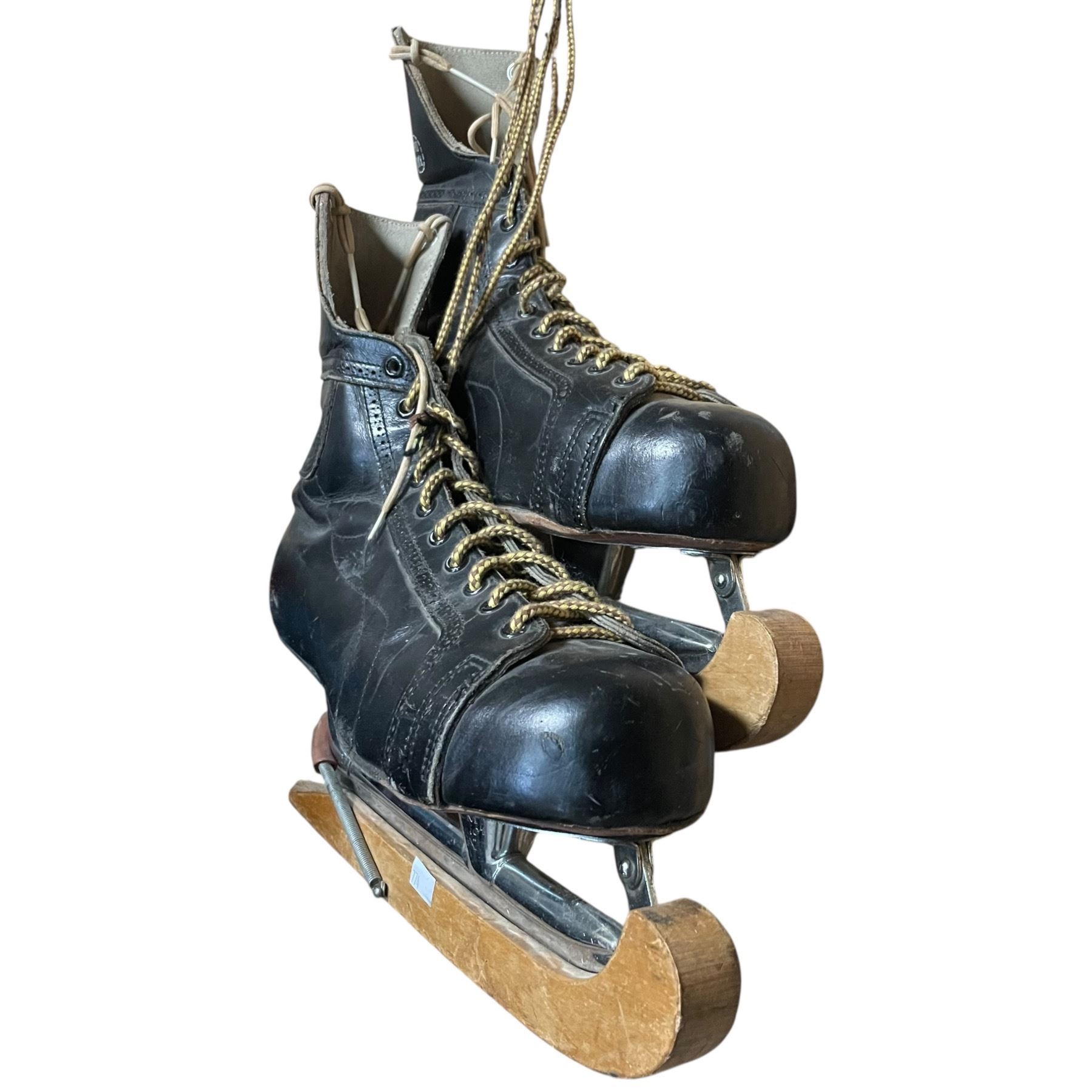 Pair of Vintage Leather CCM "Bobby Hull" Skates with Wood Skate Guards (Size 10)