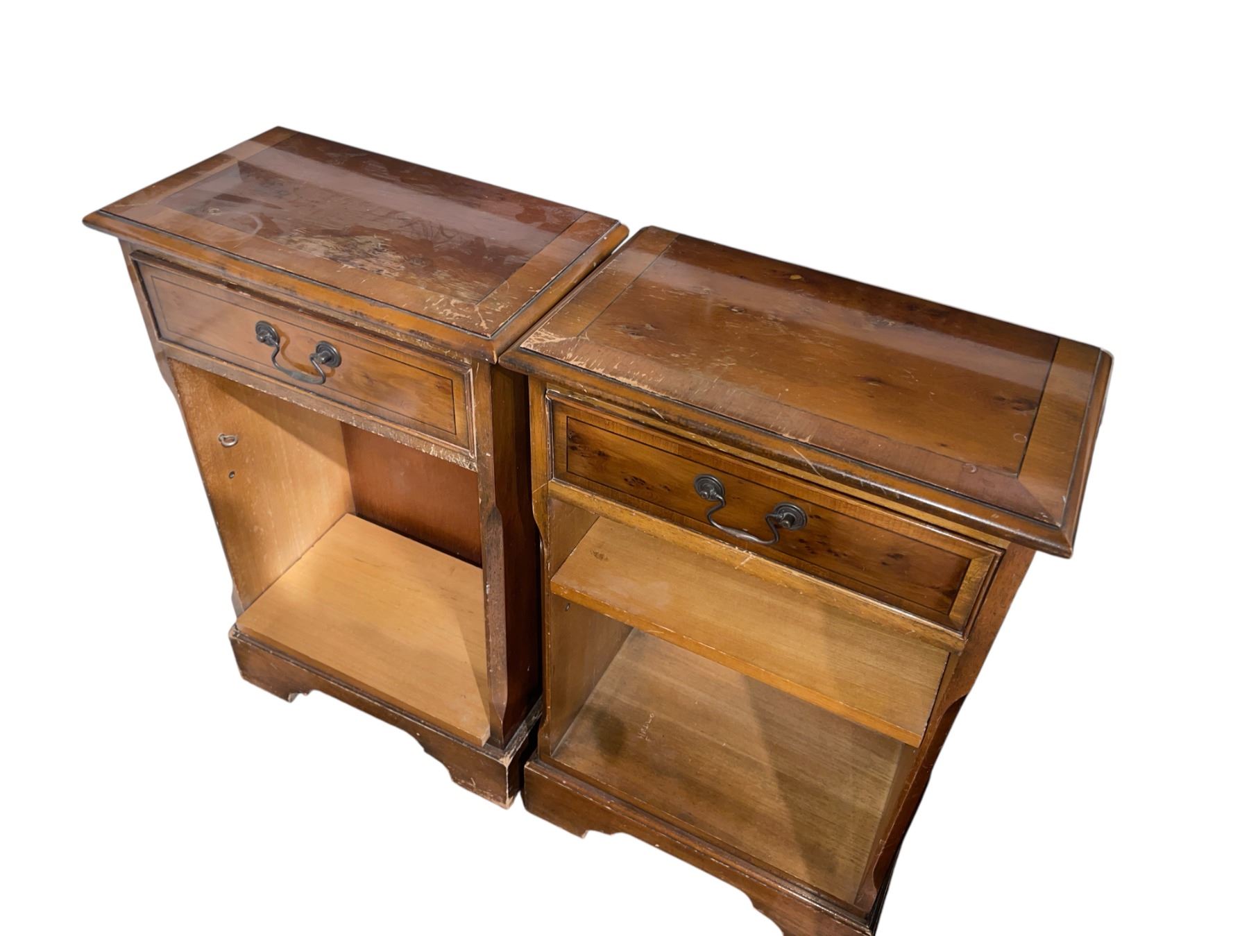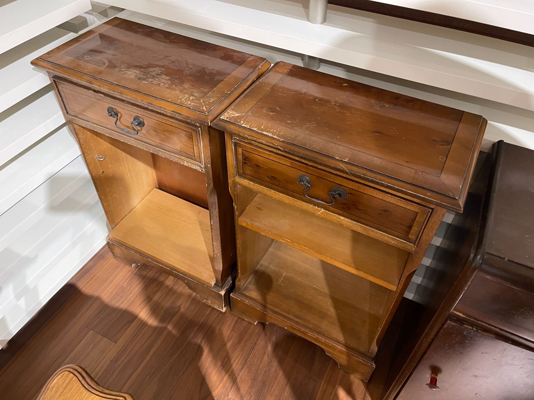 Pair of vintage nightstands measuring 18 In length, 10.5 In width, and 29.5 In height each. Classic design suitable for various interiors. Item is as pictured.