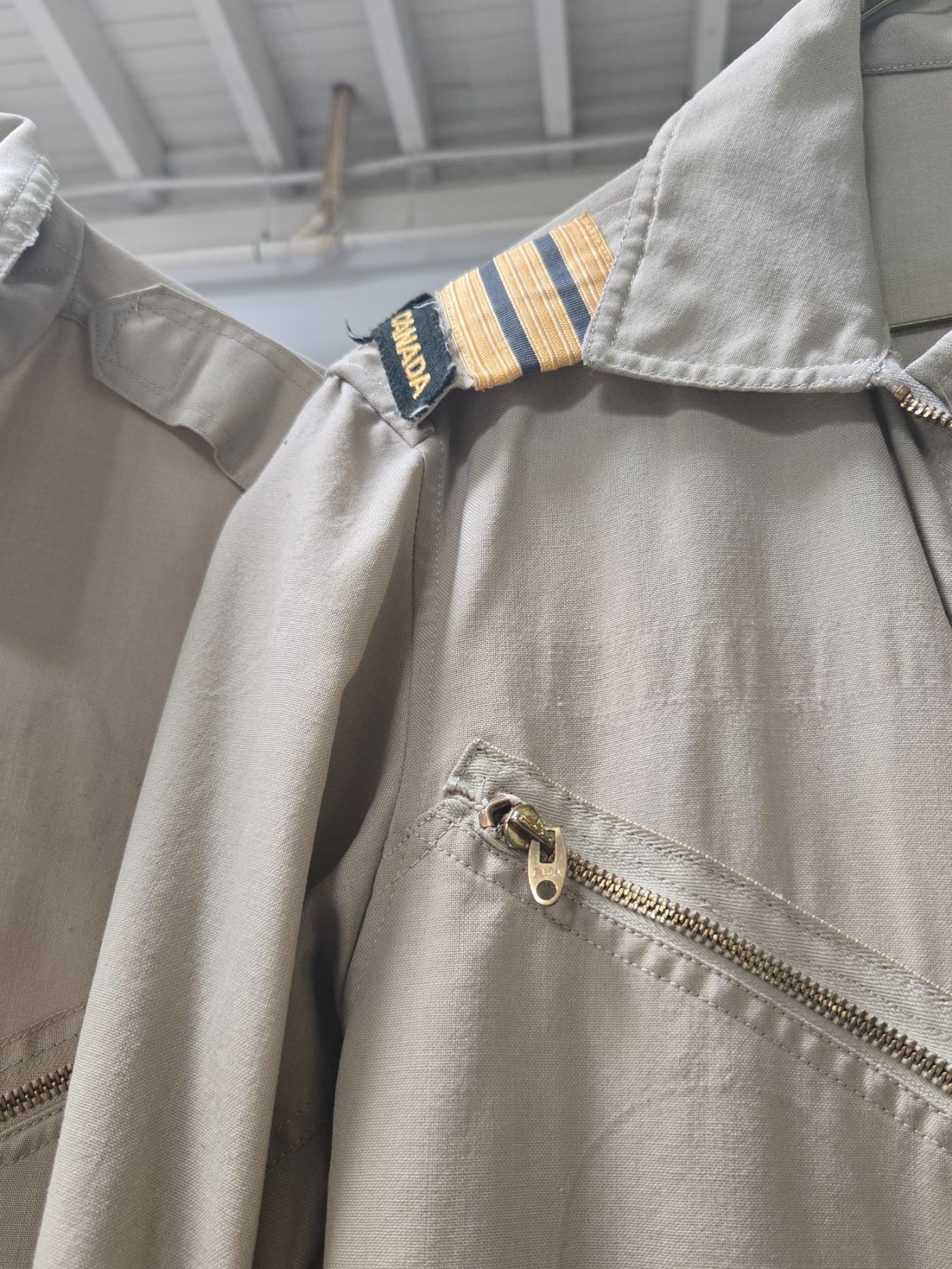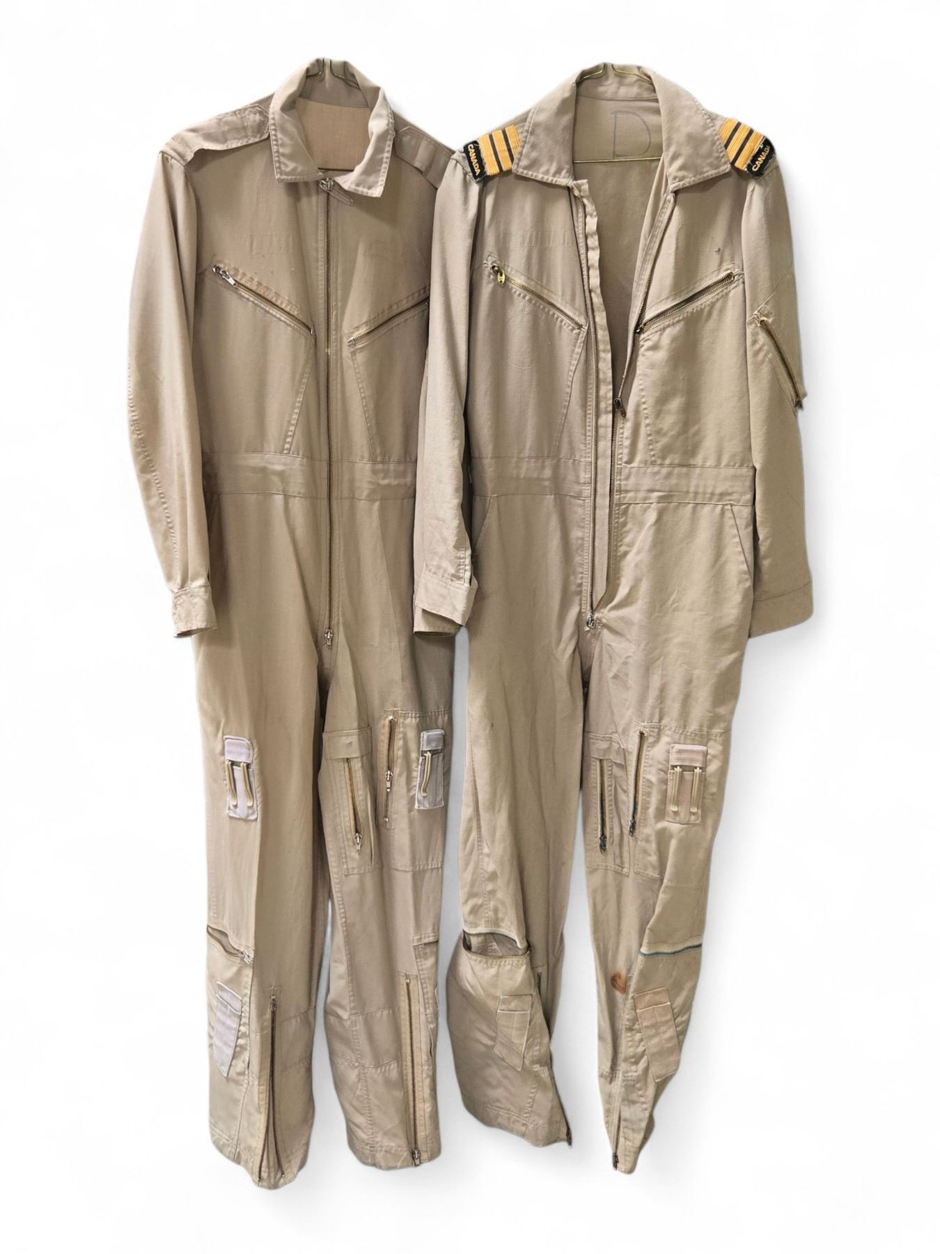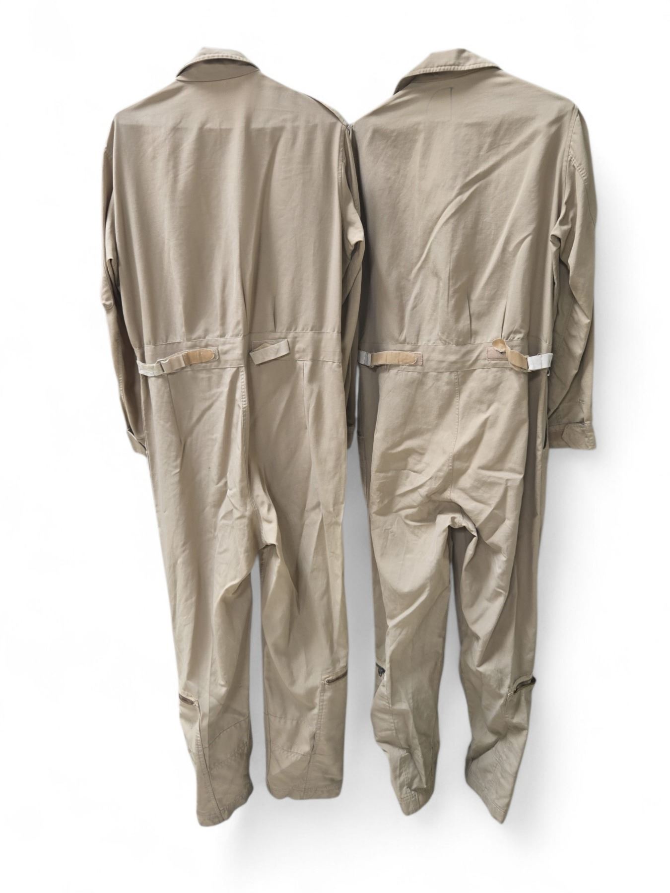 Pair of Vintage Tan Aviation/Coverall Flight Suits with Zip Front & Utility Pockets - Film/TV Wardrobe