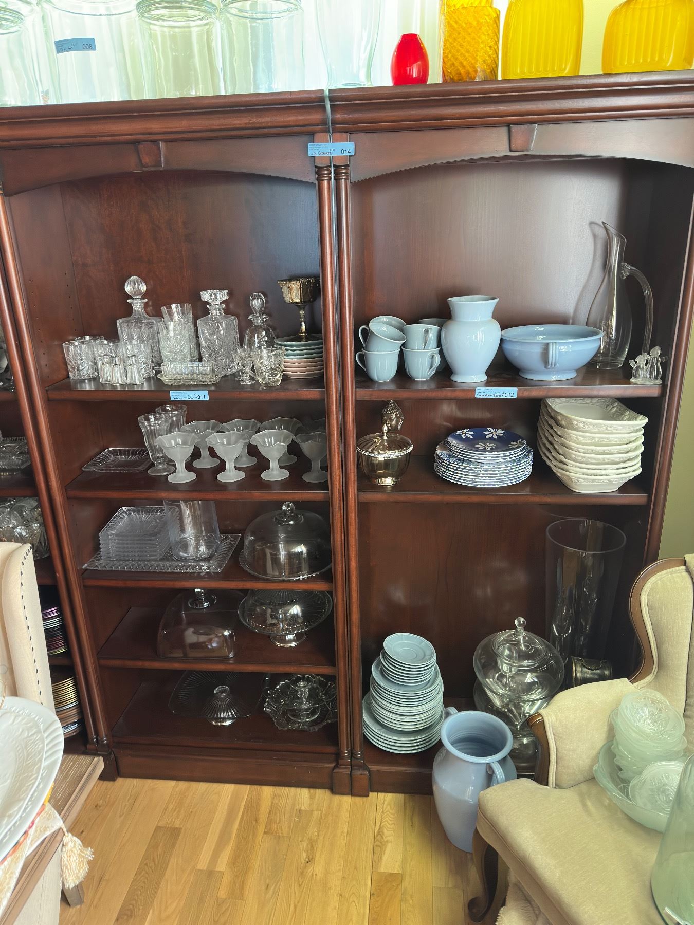 Pair of Wood Display Cabinet/Book Shelves w Adjustable Shelves