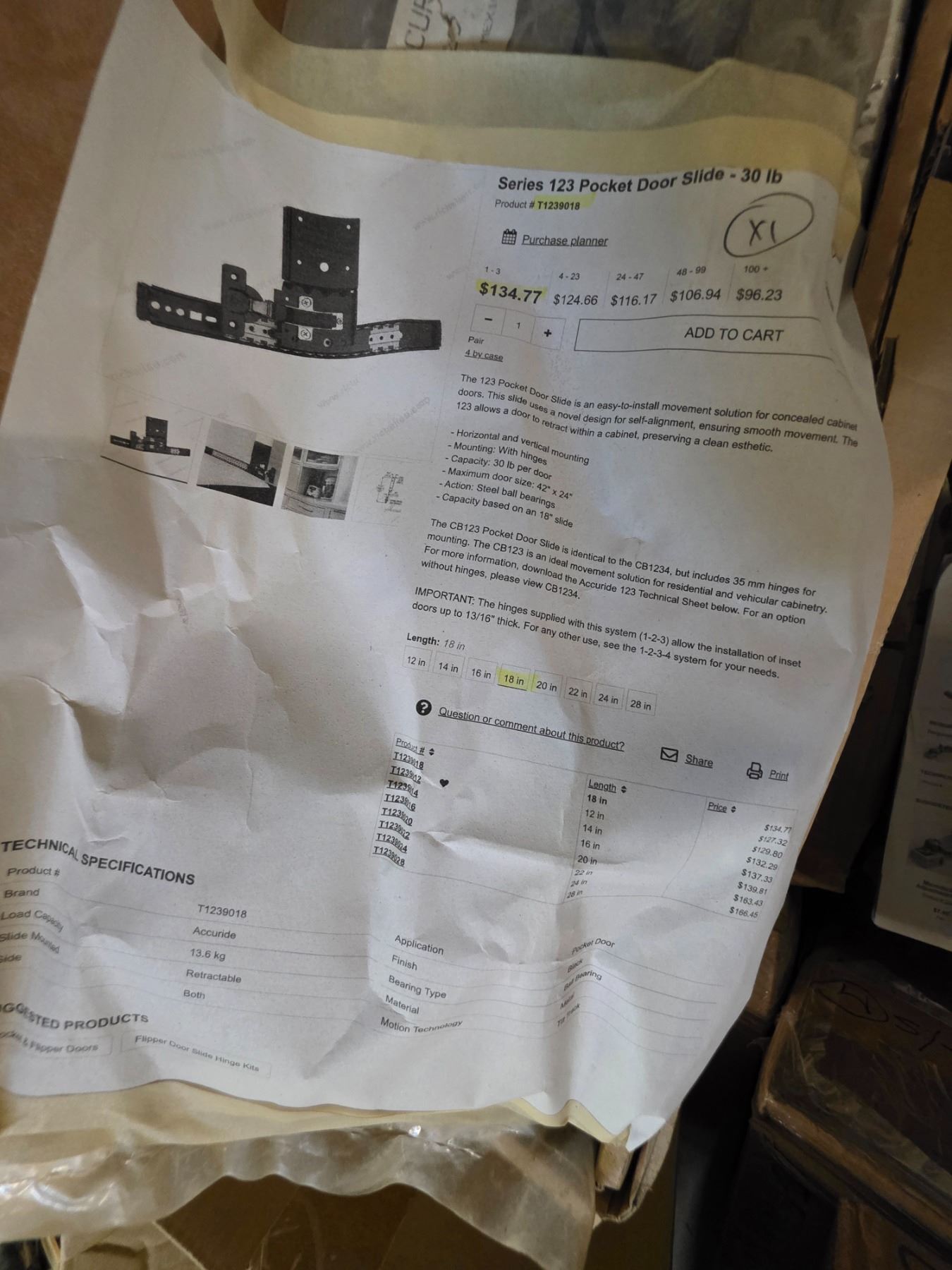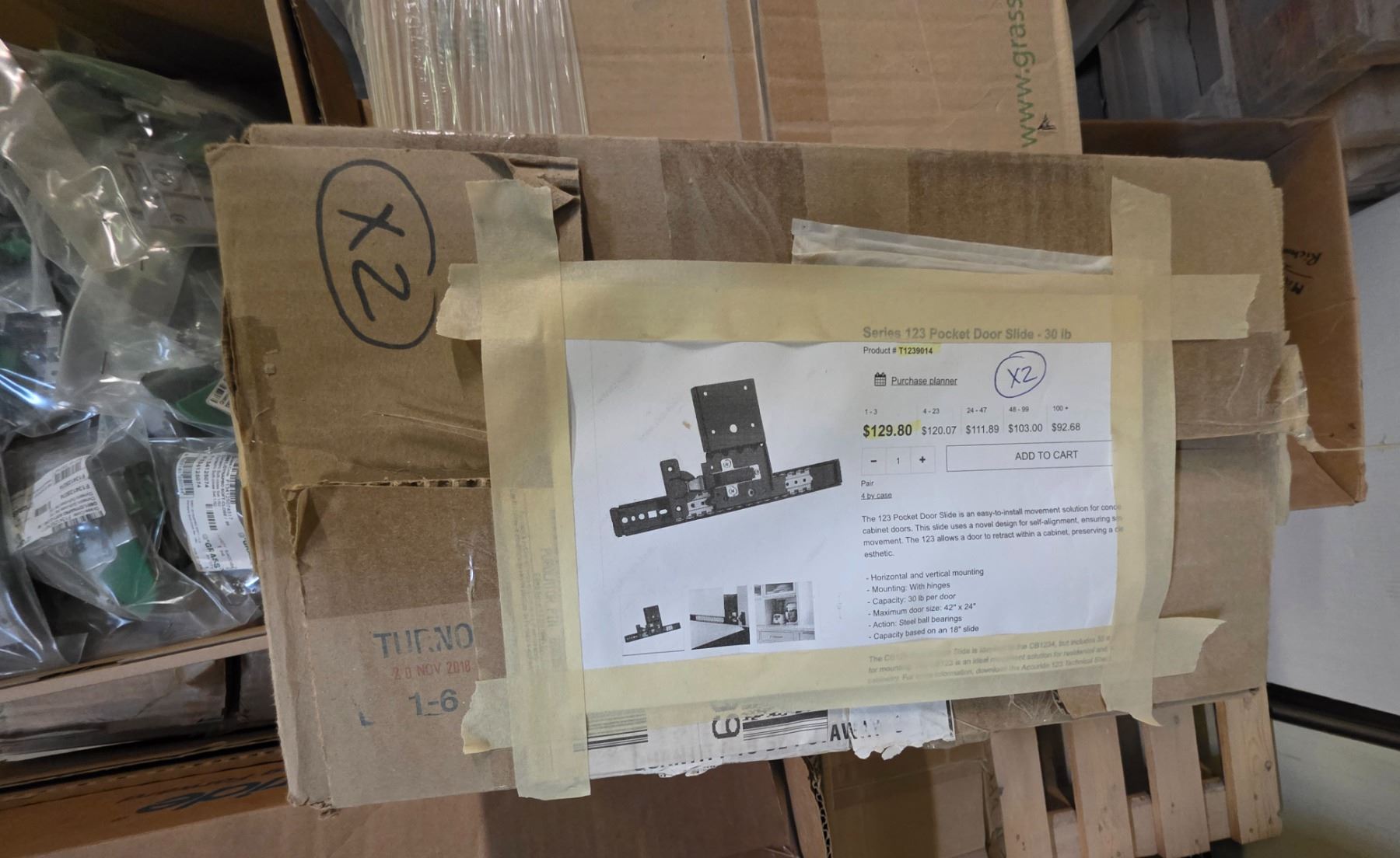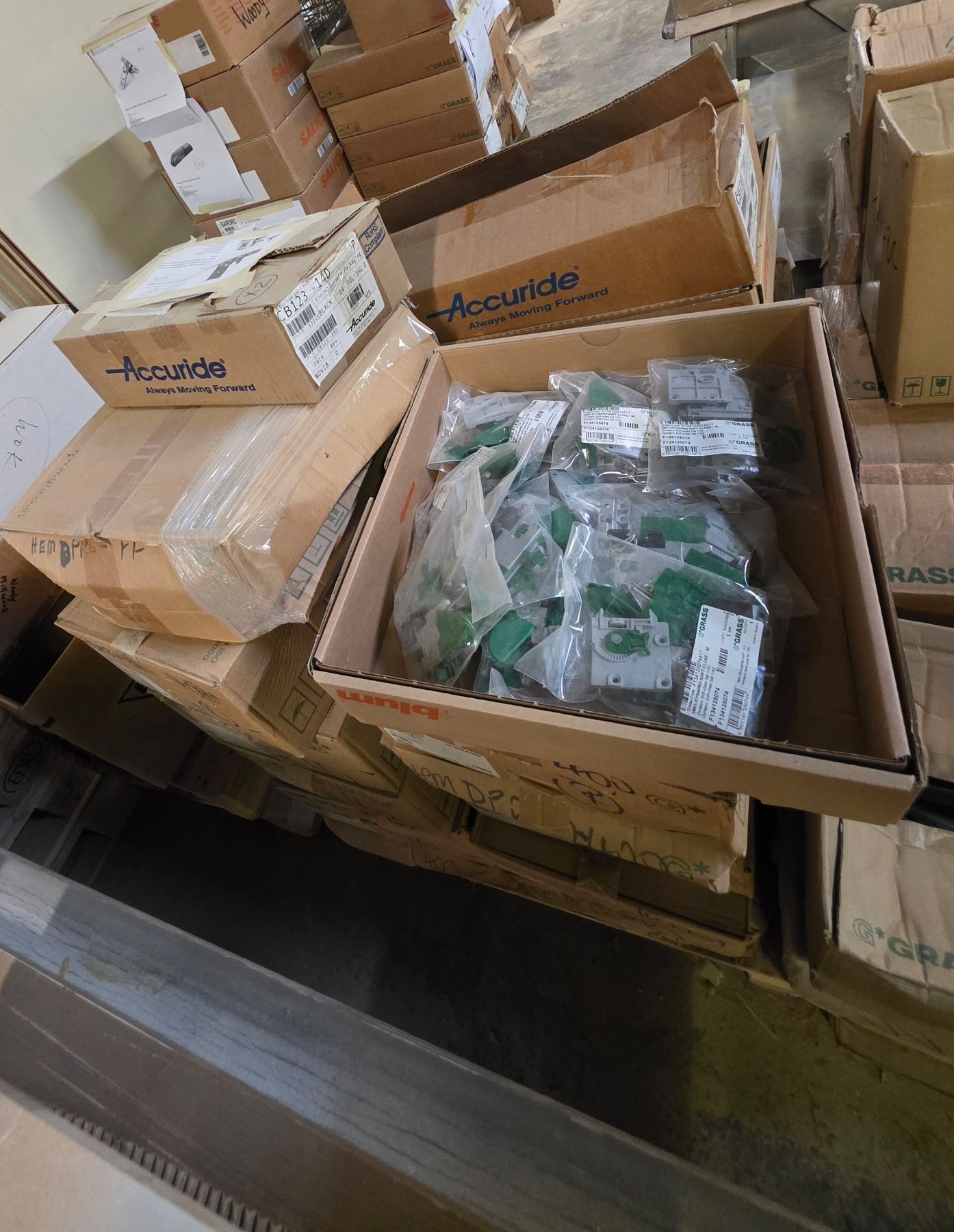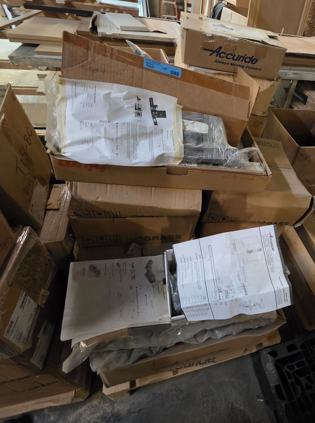 Pallet - Assorted Accuride slides, mounting hardware, pocket door hardware, etc. - Approx. Wholesale Value: $3,500+