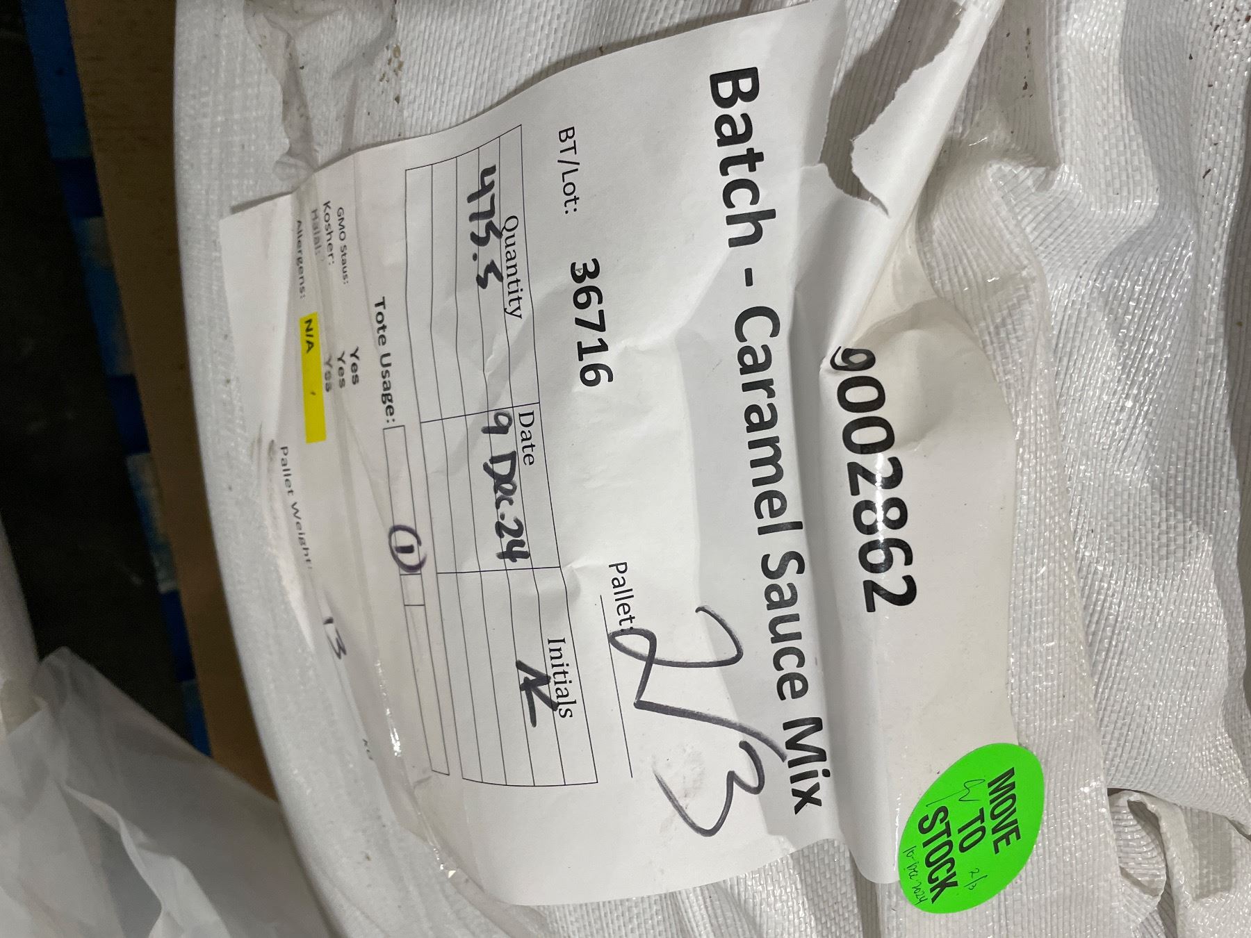 Pallet of Caramel Sauce Mix