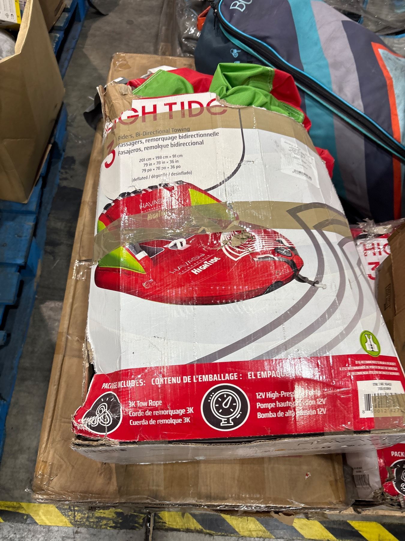 Pallet of Costco Returns - Water Sports rafts & gear, Tipsy Land game boards (new)